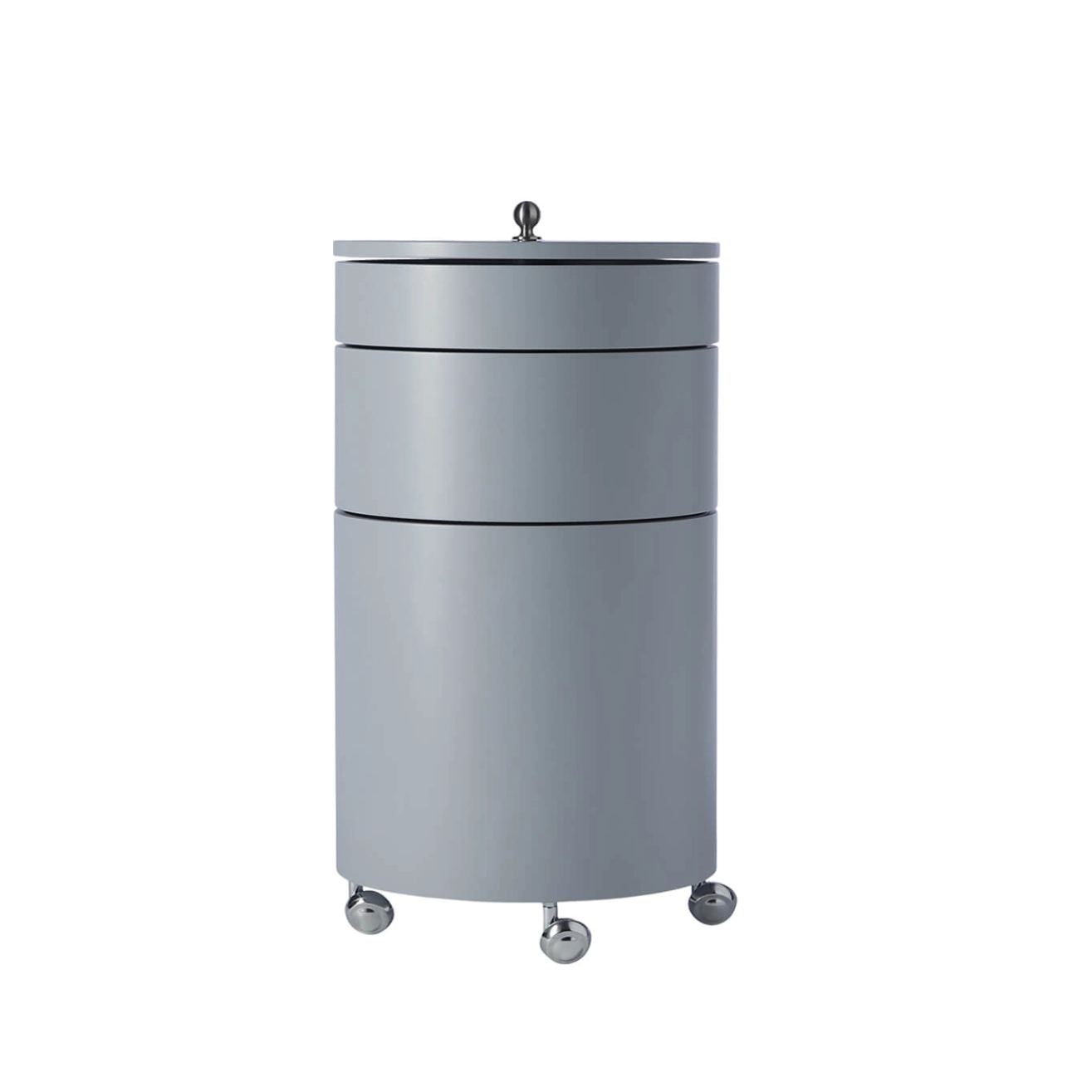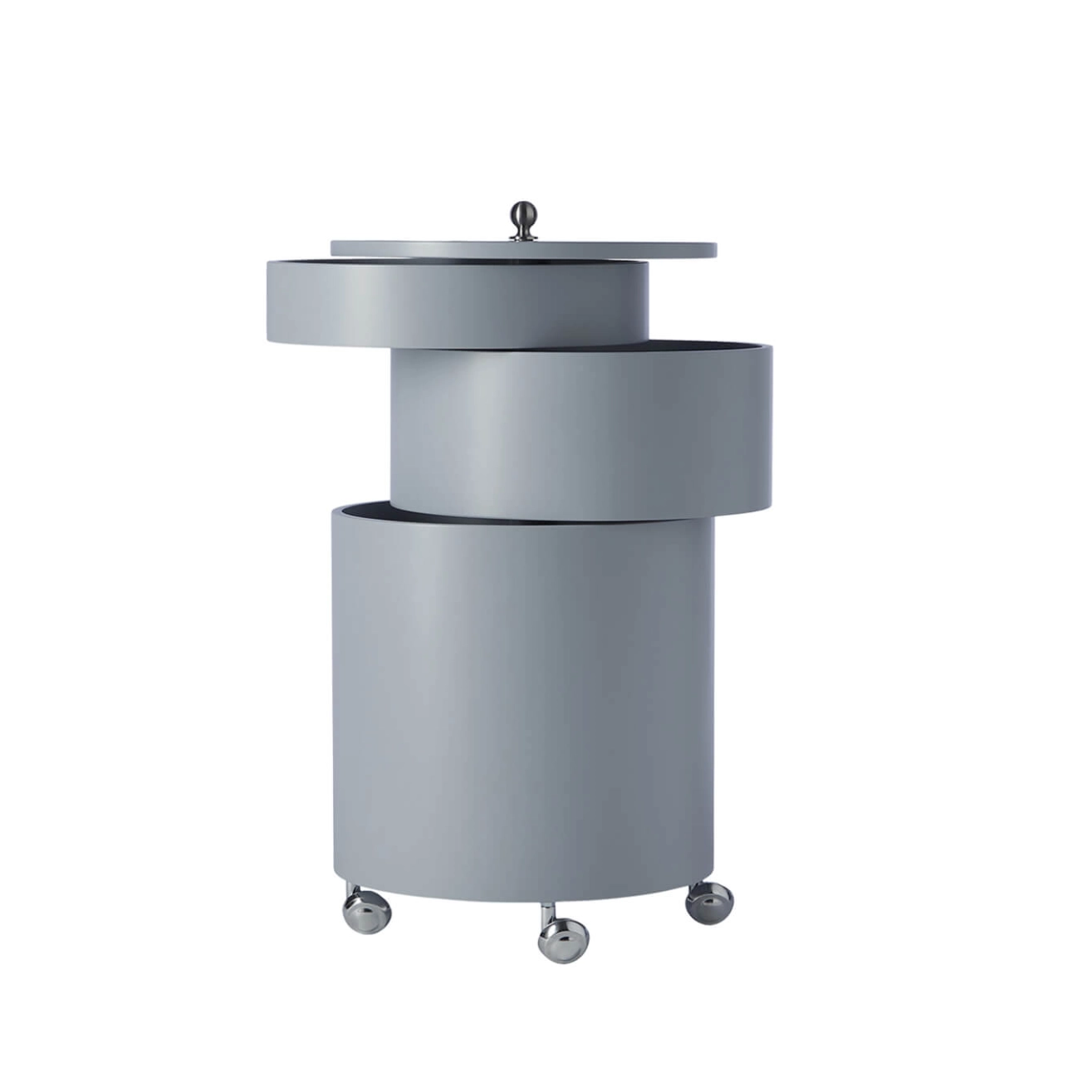 Le Barboy de Verner Panton est à la fois une table d’appoint et un meuble de rangement mobile. Il est composé de quatre parties cylindriques qui pivotent entièrement vers l’extérieur, permettant de visualiser et d’utiliser toute la surface des plateaux de rangement. Édité par Verpan, le rangement Barboy illustre parfaitement le travail de Verner Panton. Il associe une surface mate à une poignée et des roulettes chromées, créant un contraste élégant entre fonctionnalité et design iconique.