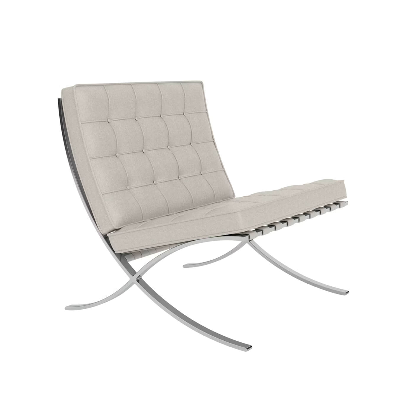 Créé par Ludwig Mies van der Rohe pour le Pavillon allemand de l’Exposition internationale de Barcelone en 1929, le fauteuil Barcelona est devenu une icône de l’architecture moderne. Sa composition épurée reflète l’essence même du design du mouvement moderniste. De sa structure croisée élégante à ses coussins formés de carrés minutieusement assemblés et cousus à la main, chaque fauteuil rend hommage à l’alliance du design contemporain, de l’artisanat haut de gamme et d’un souci du détail exceptionnel. Avec sa forme architecturale et son assise inclinée, le fauteuil Barcelona offre une posture à la fois détendue et parfaitement soutenue. Il est fabriqué avec le tissu Haven de 4 couleurs différentes, avec une structure en chrome poli. Pour confectionner les coussins, 40 carrés individuels de tissu sont cousus et capitonnés à la main avec des boutons. Les coussins sont fixés à la structure par des sangles en cuir sellier, dont les bords sont teints pour s’harmoniser avec le revêtement. Chaque fauteuil Barcelona est une pièce authentique dessinée par Ludwig Mies van der Rohe. La structure porte le logo Knoll ainsi que la signature gravée du designer, attestant de son authenticité et de sa valeur intemporelle.