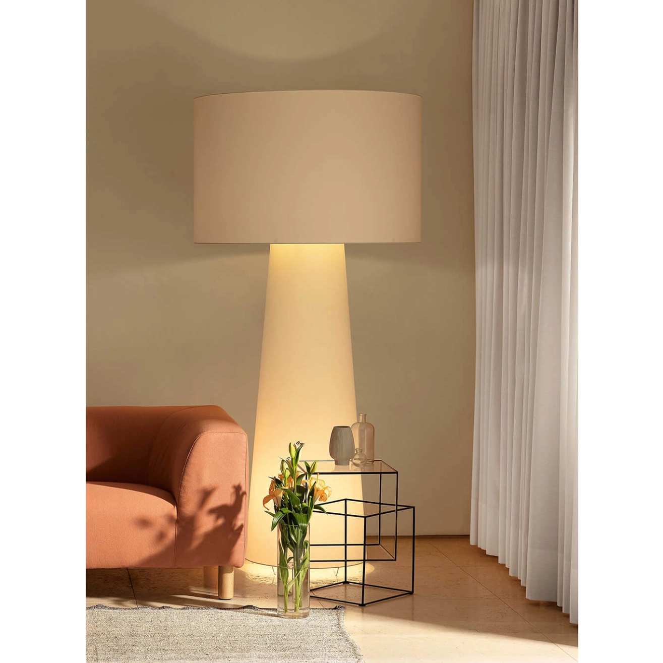 Conçue par Marcel Wanders pour Cappellini, Big Shadow est un lampadaire à lumière diffuse, disponible en différentes tailles et hauteurs. Le designer de Big Shadow reflète fidèlement la vision du designer : une alliance de matériaux et de techniques innovantes avec des styles et des archétypes traditionnels. L'inspiration pour ces lampes vient des classiques lampes de table à abat-jour, revisitées ici dans un esprit contemporain, le tissu recouvrant non seulement la partie supérieure de la lampe, mais aussi la base, afin de créer une source de lumière chaleureuse et confortable. Edité par Cappellini, le lampadaire Big Shadow présente une structure en tige métallique chromée avec un abat-jour en polyamide blanc et viscose.