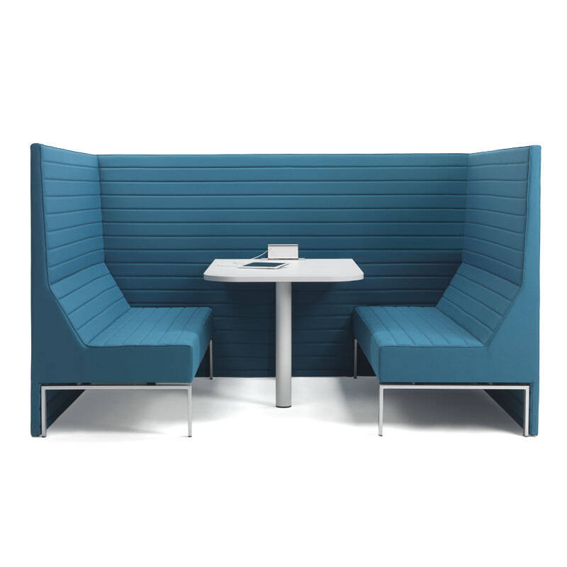 Stripes Box présenté est équipé d'une table en HPL. Le prix ne comprend pas le bloc prise.