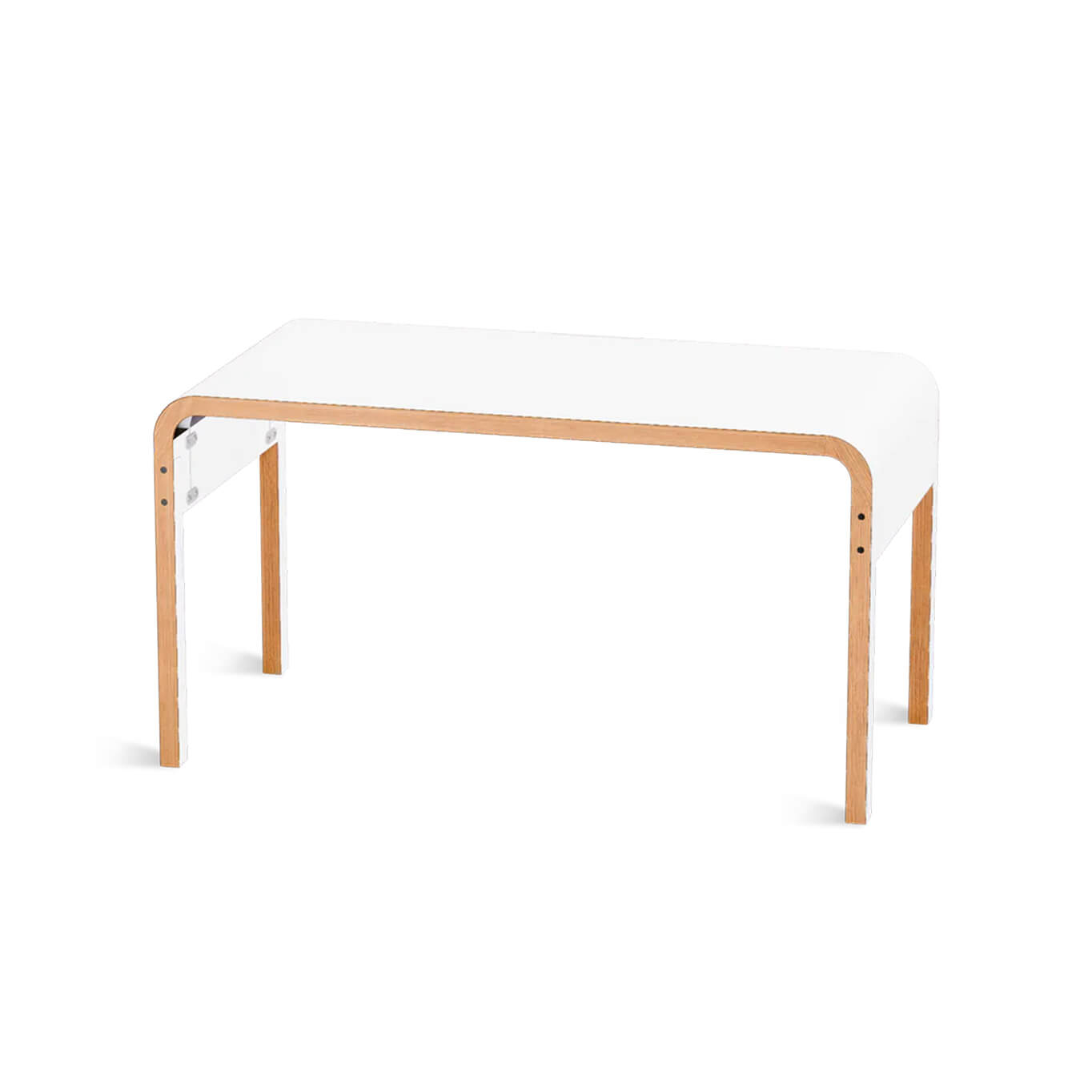 Bois, surface supérieure et inférieure stratifiée, piétement en bois massif, équerre acier thermolaqué