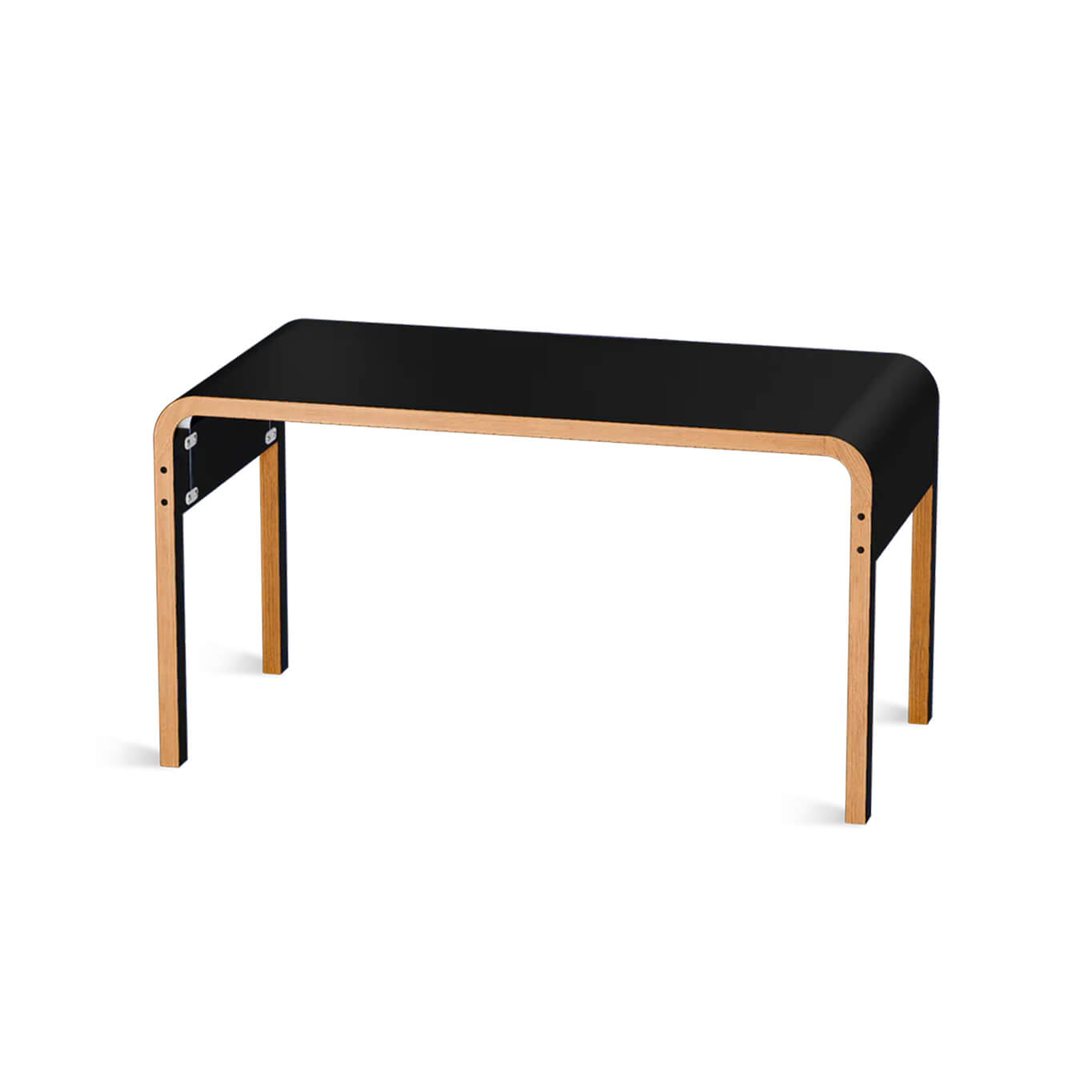Bois, surface supérieure et inférieure stratifiée, piétement en bois massif, équerre acier thermolaqué