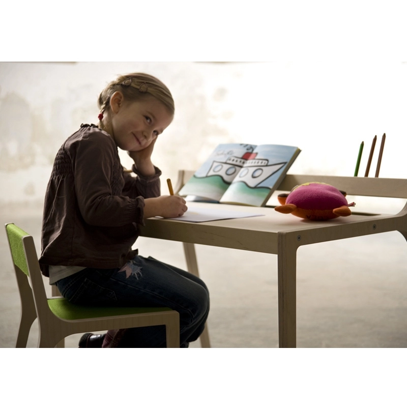 Afra est un bureau pour enfant de 2 à 8 ans, réalisé en contreplaqué bouleau brut finement poncé. Un porte-crayons est aménagé dans le plateau et recouvert de feutre, disponib ... En savoir plus