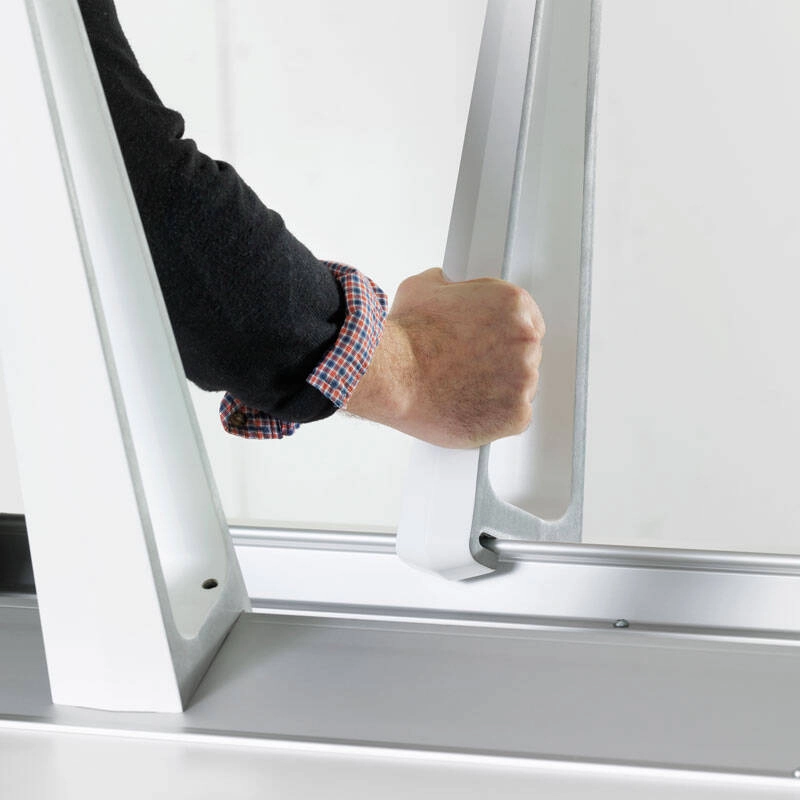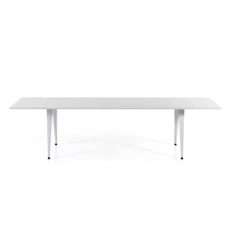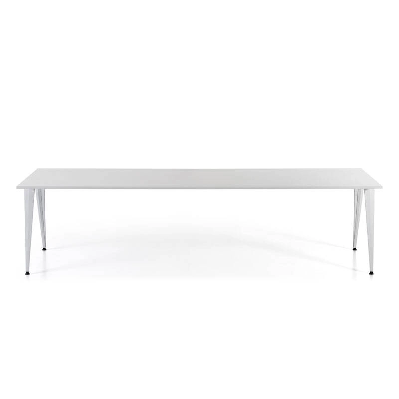 Attach est conçue à partir de poutres en aluminium recyclé extrudé anodisé et de pieds en aluminium recyclé reliés sous la table et fixés grâce à la gravité. Cette impressionnante table marie brillamment technologie et art. Avec une utilisation simple d’éléments basiques combinés à une large sélection de plateaux et un choix de coloris pour les pieds,