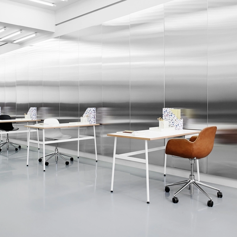 Avec Journal Desk, Simon Legald propose un bureau fonctionnel jusque dans les moindres détails et particulièrement esthétique. Edité par Normann Copenhagen, il est composé d’un plateau coloré et d’une armature en acier léger. Avec Journal, le designer a voulu proposer un bureau adapté aux besoins de notre époque. Il s'harmonise facilement à tous les styles d’intérieurs. De plus, la taille relativement modeste de ce bureau fait qu'il ne prend pas trop de place. Son aspect monochrome est interrompu par un bord en chêne qui apporte un ton chaud à l'ensemble. Le plateau dispose de sortie pour câbles tandis qu'un plateau en acier sous la table ménage un espace pour stocker des stylos. Les détails du bureau Journal contribuent à créer un environnement de travail agréable et favorisent l'émergence de bonnes idées. Le bureau Normann Copenhagen est livré en emballage plat se monte facilement.