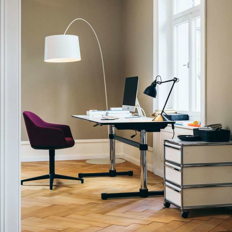 Avec Kitos M, USM propose un bureau réglable en hauteur, fiable et moderne. Avec l’option de réglage en hauteur mécanique de la table En savoir plus