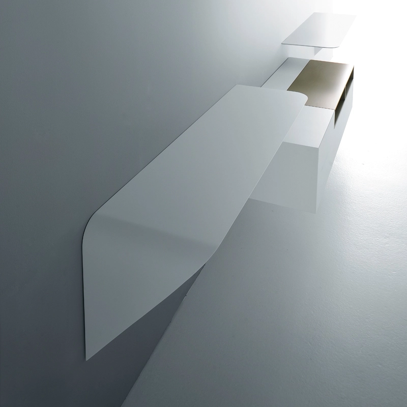 Dessiné par Victor Vasilev, Mamba Light est à la fois un petit bureau suspendu et une étagère. Sobre et élégant, ce meuble réalisé en Cristalplant est édité par MDF. Sa forme ondulée et la finesse de ses lignes lui confèrent un design au caractère fort et d'une beauté parfaite. Etant suspendu, Mamba Light prend peu de place et peut ainsi s'intégrer dans les petits espaces. A la fois légère visuellement et sculpturale, cette étagère suspendue s'intègre dans tous les styles d'intérieurs. Tel un ruban, Mamba Light semble surgir du mur et disparaitre selon les besoins.