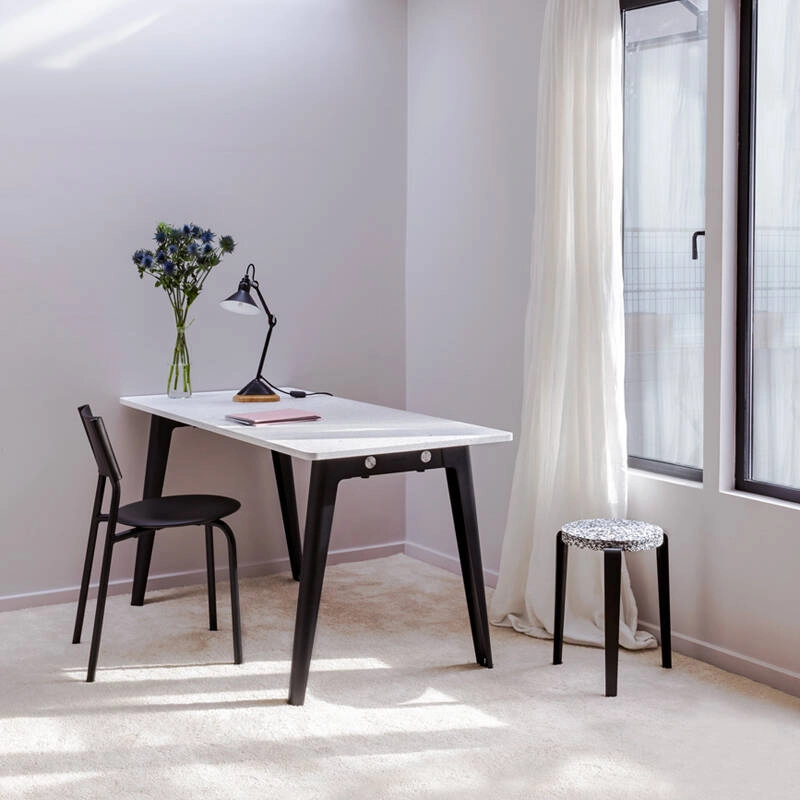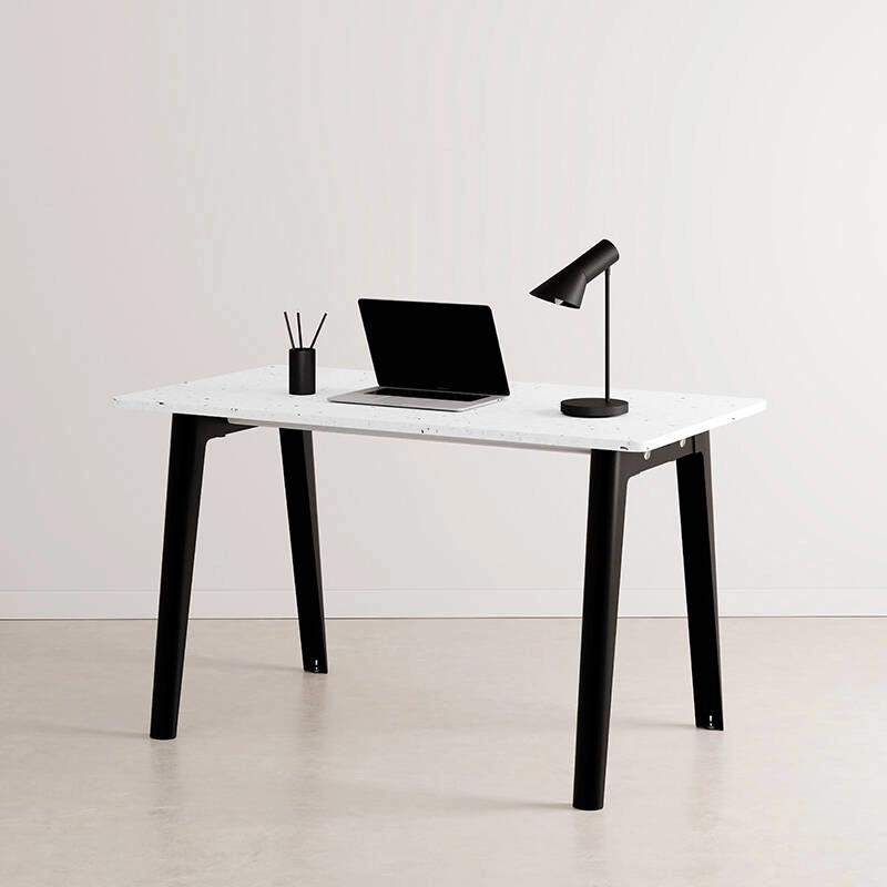 Le bureau NEW MODERN de TIPTOE est idéal pour télétravailler ou mieux s’organiser chez soi. Il est constitué d'un piétement en acier et d'un plateau en plastique recyclé, fabriqué à partir des déchets de centaines de pots de yaourt. Créée par TIPTOE, la collection New Modern est le fruit d’un an de travail et d’itérations pour créer un système de table modulable aussi efficace sur les plans fonctionnels et industriels qu’en matière de durabilité. Comme chaque objet TIPTOE, le système New Modern a été conçu en veillant à maîtriser notre impact tout au long du cycle de vie du produit. Le plateau décliné dans deux dimensions est associé à un piétement disponibles dans plusieurs couleurs, s'intégrant ainsi dans tous les intérieurs.