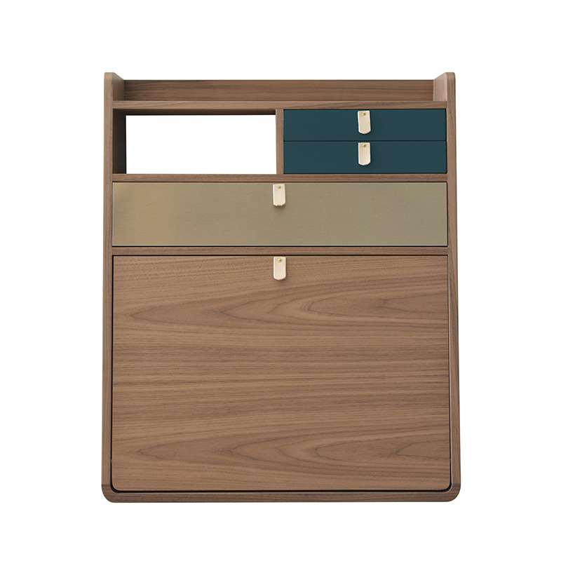3. Secrétaire mural GASTON noyer Bleu pétrole/ laiton brossé