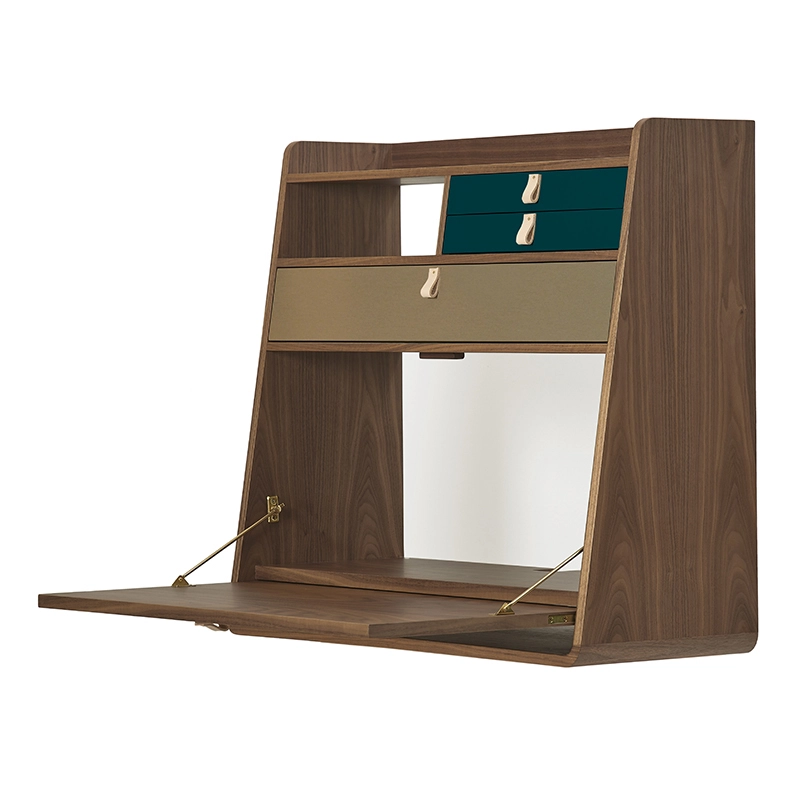 Bureau Secrétaire mural GASTON noyer Bleu pétrole/ laiton brossé HARTO