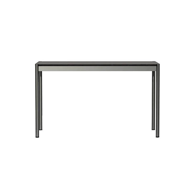 Dans cette version étroite, la table USM Haller est parfaite pour les petits espaces et se décline en stratifié gris perle, lino noir ou Fenix gris.