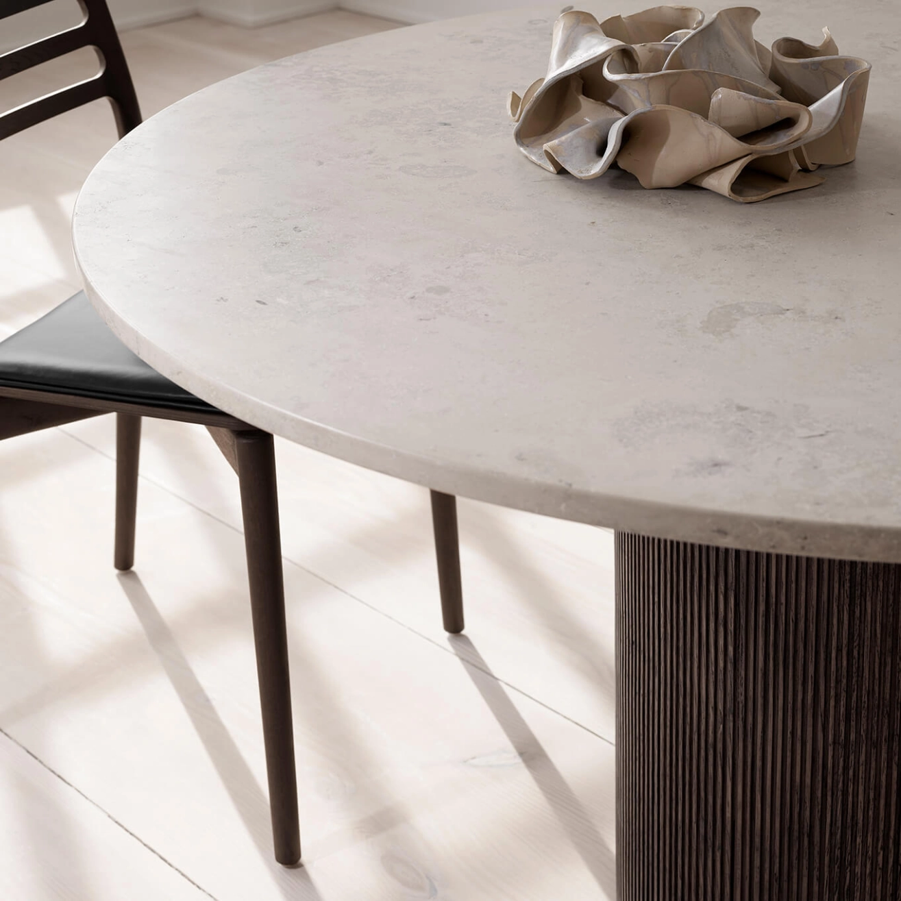 Table CABIN ROUND 494-495 Chêne foncé et Calcaire Jura gris bleu VIPP