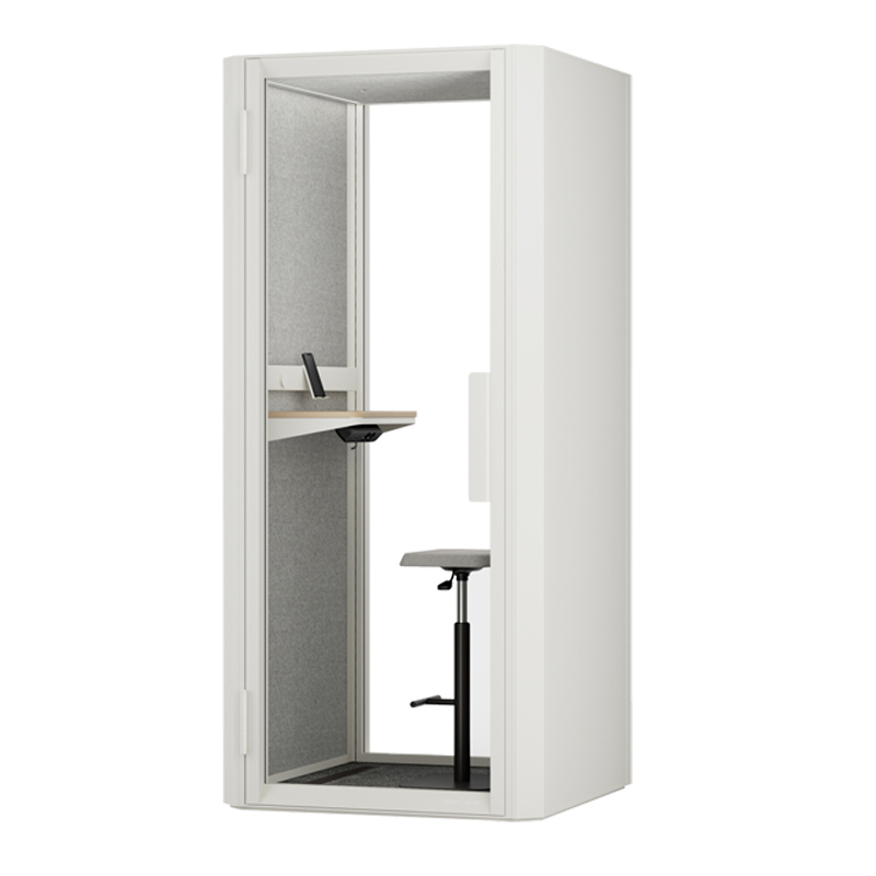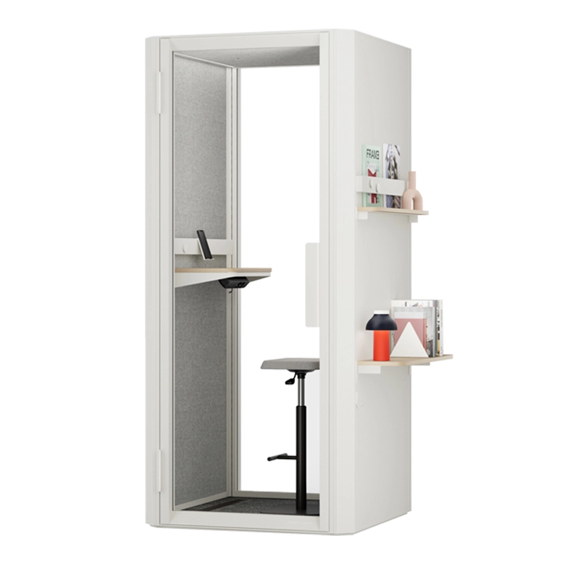 La cabine acoustique Jetson S1 est équipée d'une tablette murale et d'un tabouret réglable en hauteur. Des accessoires sont disponibles en option :