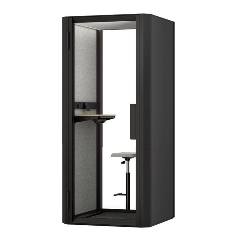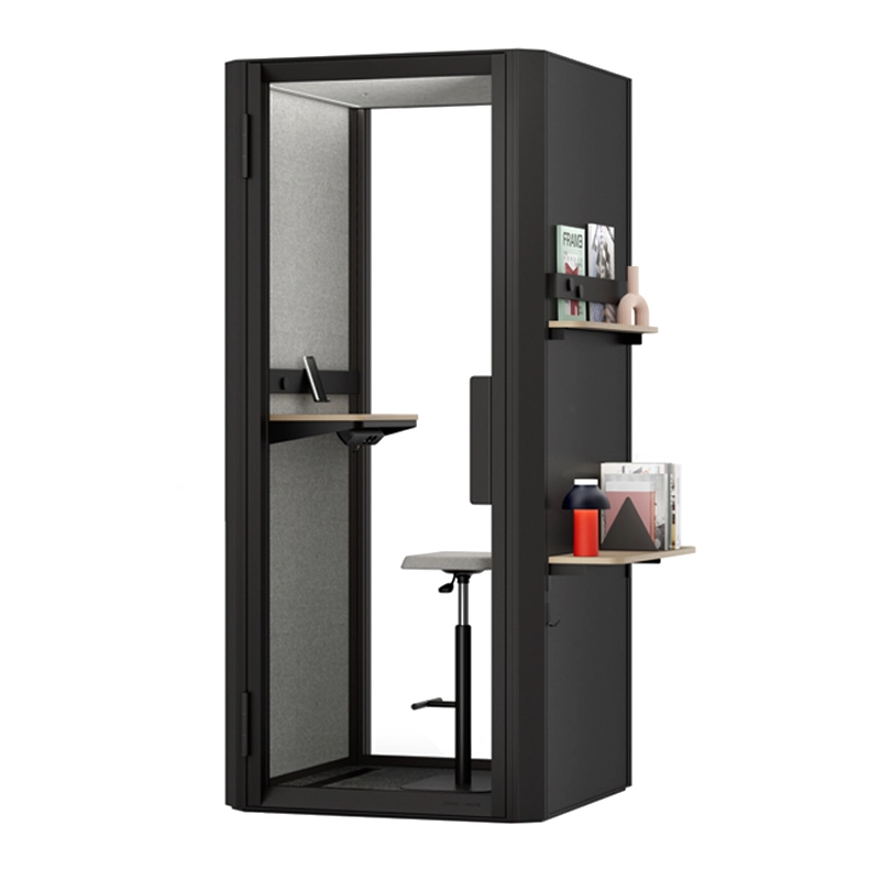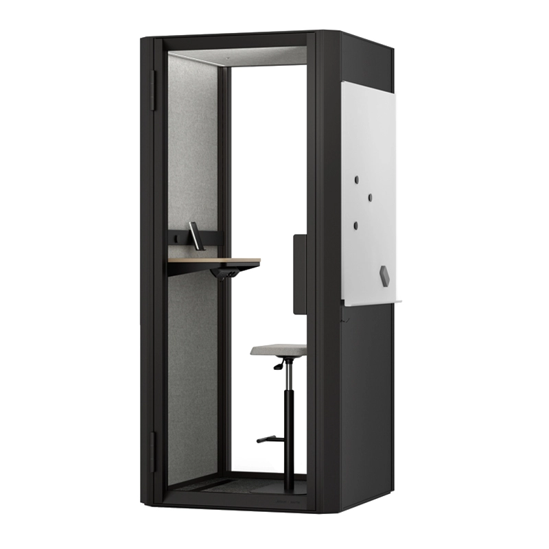 La cabine acoustique Jetson S1 est équipée d'une tablette murale et d'un tabouret réglable en hauteur. Des accessoires sont disponibles en option : - un lot d'étagères élégantes, comprenant une étagère profonde, une étagère étroite, un rail d'affichage, un crochet mural et un support d'exposition. - Un tableau blanc, livré avec un marqueur, une éponge, 3 aimants et un crochet mural