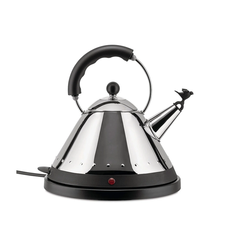 La célèbre bouilloire 9093 avec l'oisillon qui siffle quand l'eau bout, est un grand succès depuis sa création en 1985. Elle représente pour la marque Alessi le point de rencontre entre le grand design et les méthodes de production à grande échelle que recherchait son designer américain Michael Graves. Son travail reprend les codes visuels caractéristiques de l'artiste, qui allient les influences de l'Art Déco et du Pop Art, jusqu'au langage des dessins animés. Cette bouilloire est ainsi apparue dans de nombreux films (Crocodile Dundee, Ghost, Per una notte d'amore...).