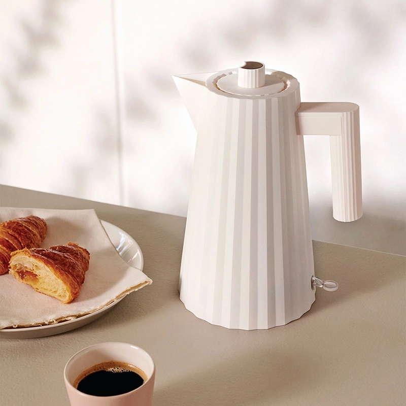 Editée par Alessi, la bouilloire électrique Plissé est élégante et sculpturale. Malgré une forme simple et épurée, elle habille parfaitement une cuisine avec son habit plissé. La bouilloire Plissé marie les aspects fonctionnels à un design plastique et fascinant, révélant la formation d’architecte de Michele De Lucchi, ainsi que ses passions pour l’artisanat et la sculpture. La bouilloire électrique Plissé d'Alessi peut être comparée à un habit de haute couture, un magnifique objet pour la cuisine.