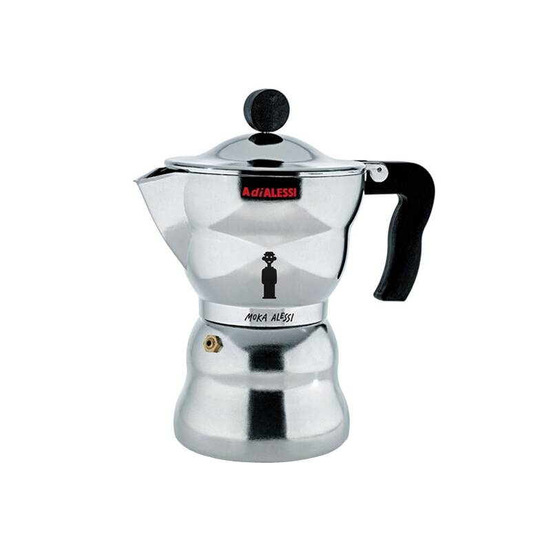 La cafetière Moka éditée par Alessi est avant tout un hommage qu'Alessandro Mendini rend à son grand-père maternel, Alfonso Bialetti, qui, au cours des années 30 a été l'inventeur, le designer et le premier producteur de la Moka Express, la célèbre cafetière espresso italienne. Un classique du design du 20ème siècle avec sa forme octogonale qui s'inspire du futurisme et de l'art déco. Réalisée en aluminium fondu en coquille, la cafetière Moka présentée ici reprend les codes traditionnels avec des lignes courbes et des rondeurs tout en apportant certaines améliorations : le volume du récipient est recalculé, l'épaisseur du matériau optimisée et l'ergonomie du pommeau plus adaptée. La cafetière Moka s'est inscrite de façon indélébile dans la mémoire collective du public et le rituel continuera à se répéter chaque matin. Bien loin des nouvelles cafetières électriques, vous exposerez fièrement cette cafetière sur le plan de travail de la cuisine.