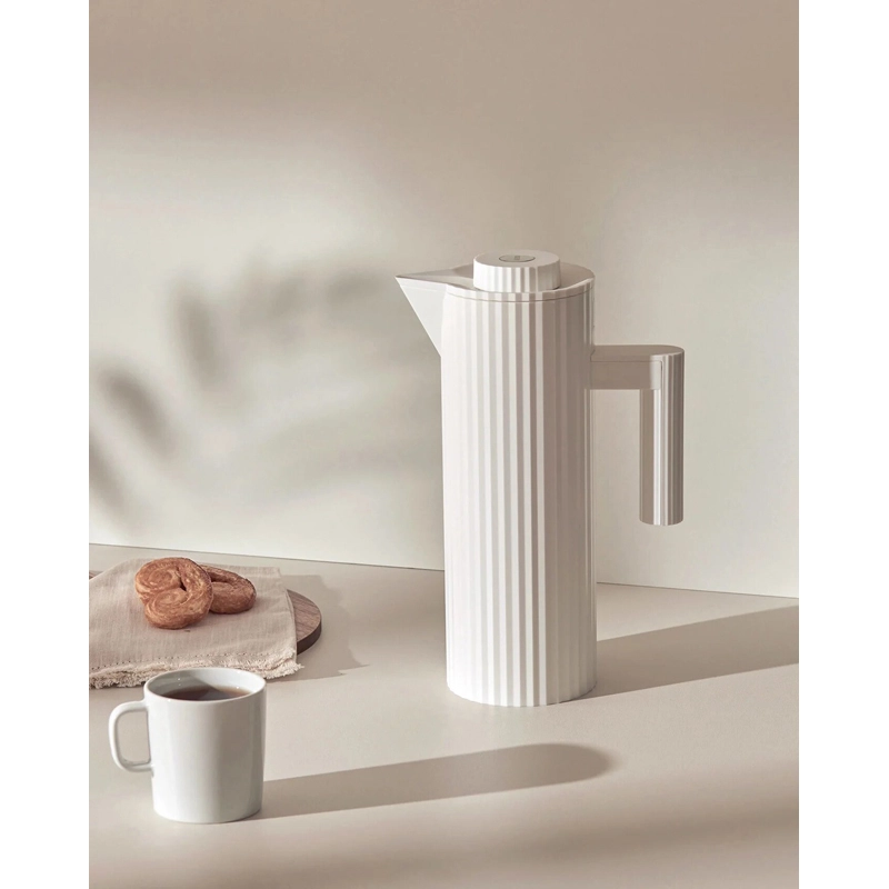 Edité par Alessi et crée par Michele De Lucchi, Plissé est un pichet isotherme, habillé d'un drapé raffiné. Ce pichet conserve la chaleur de vos boissons chaudes et est facilement transportable et utilisable. Cet accessoire est une synthèse parfaite entre contraintes techniques, hautes performances et élégance couturière. Elégant et intemporel, le pichet isotherme Plissé est un parfait complément pour la maison.