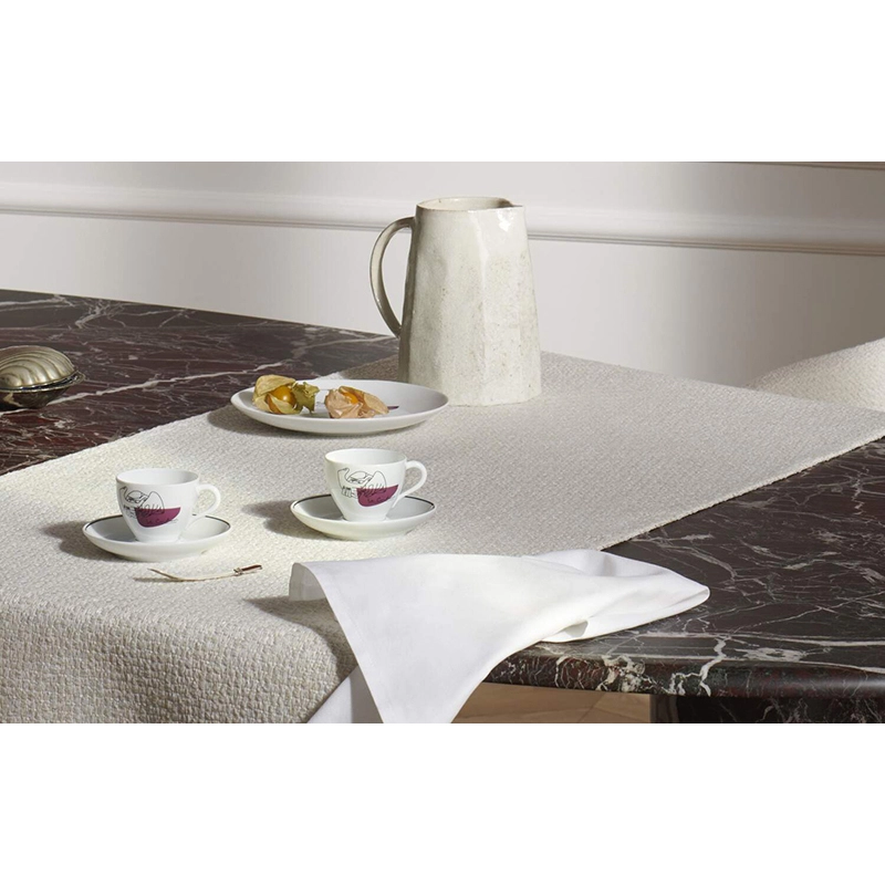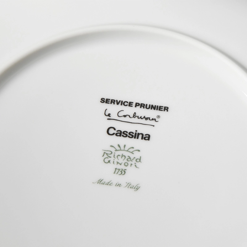 La collection de vaisselle Prunier est le fruit de la collaboration entre Cassina, Ginori 1735 et la Fondation Le Corbusier. Conçue par Le Corbusier en 1961 pour le restaurant éponyme de Londres, chaque pièce en porcelaine blanche est délicatement ornée à la main du motif original de mains entrelacées, inspiré de la tapisserie "Les Mains" créée en 1951. L'ensemble de la collection Prunier, comprenant une assiette plate, une assiette creuse, une assiette à dessert et une tasse à café avec soucoupe, incarne le goût des formes prôné par Le Corbusier. Cette réédition réalisée par Cassina en collaboration avec Ginori 1735, vendue par set de 2, allie le génie du design moderniste de Le Corbusier à l'excellence artisanale italienne insufflée par Cassina et Ginori 1735, créant une table empreinte d'histoire et d'élégance intemporelle.