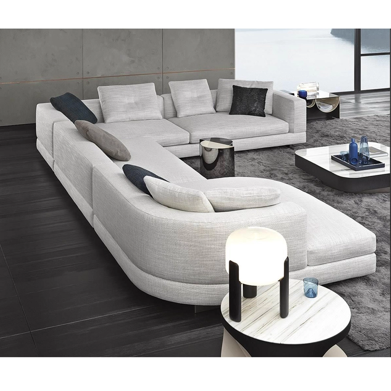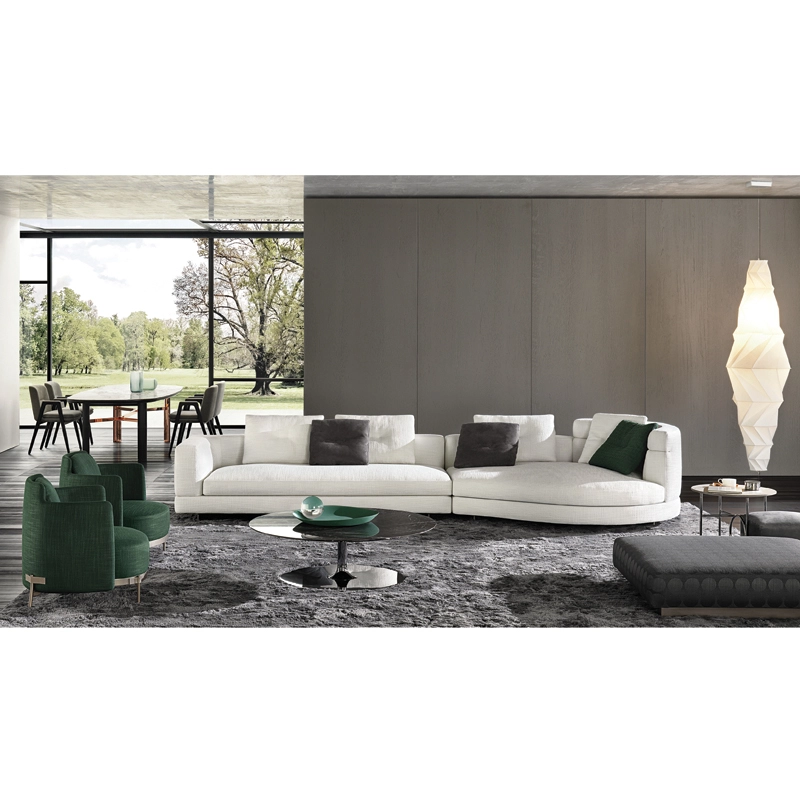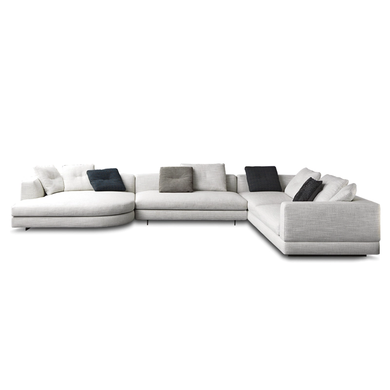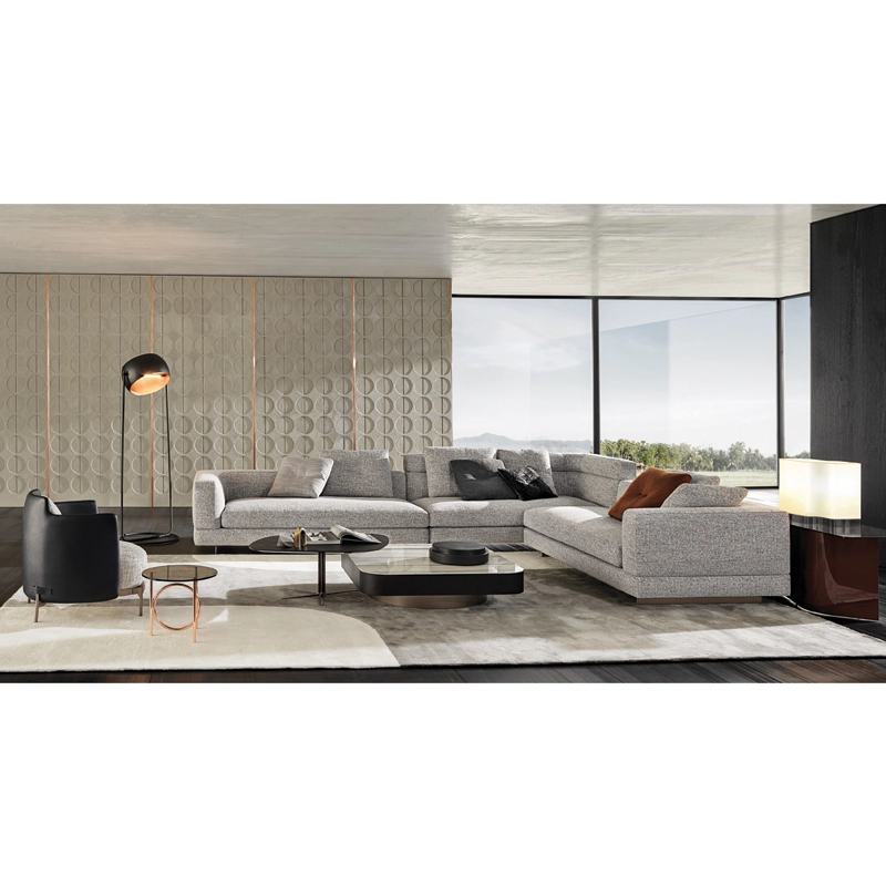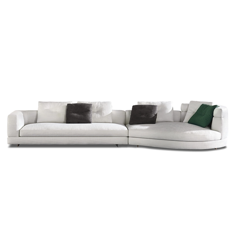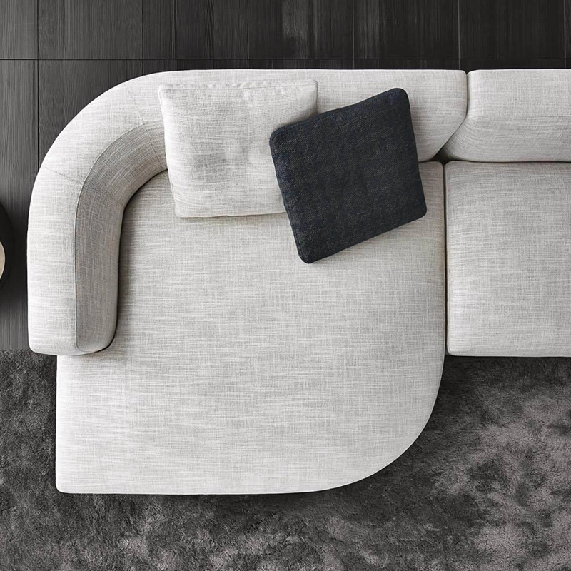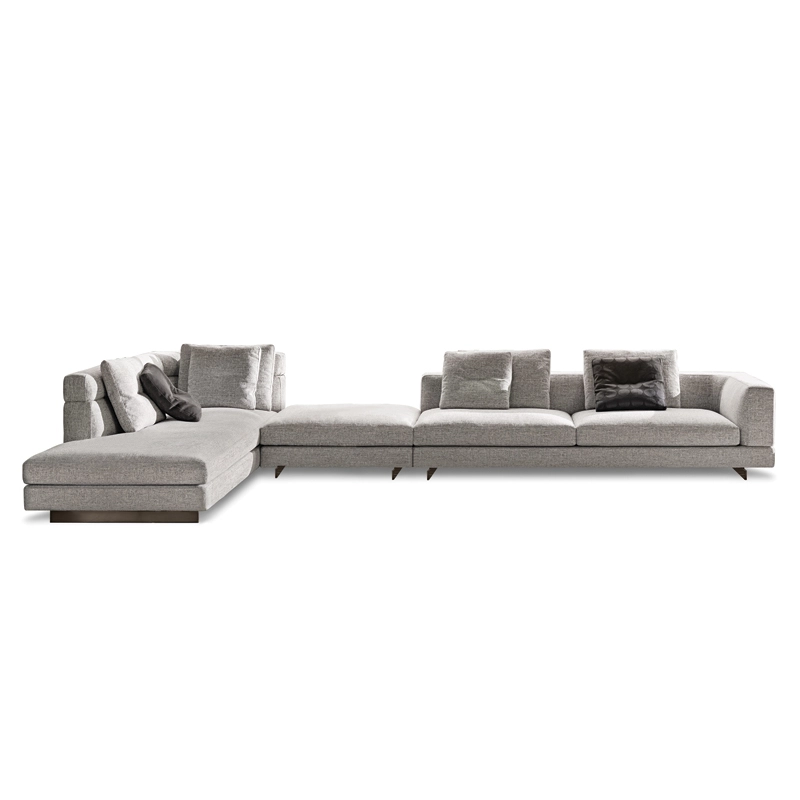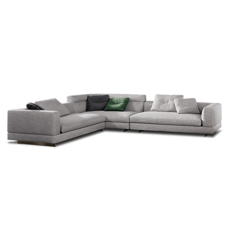 Minotti s’inspirent du monde de la mode : les coutures sur le coin du canapé et sur le haut dossier/accoudoir et la couture centrale sur les coussins de dossier. Le piètement, réalisé en aluminium de couleur bronze clair, donne une sensation de légèreté au canapé qui semble flotter au-dessus du sol. Avec ses nombreux tissus disponibles et toutes les dimensions possibles,