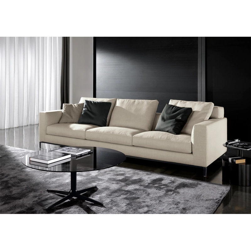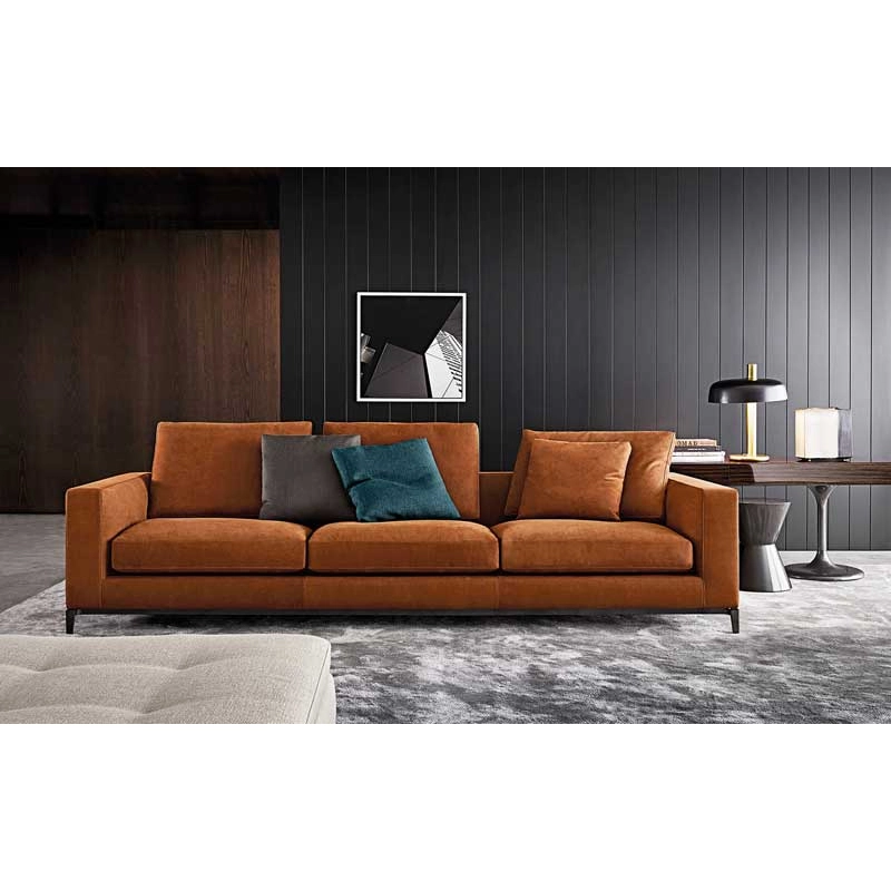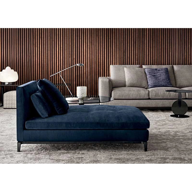Minotti Studio. Grâce à la légère inclinaison de l’assise et à ses rembourrages souples et accueillants,