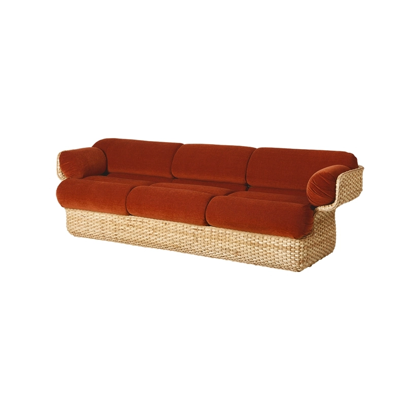 La collection Basket de chez Gubi rend hommage à la technique classique de la vannerie en rotin. La collection comprend un canapé trois places, un canapé deux places et un fauteuil, qui partagent tous la même construction et les mêmes caractéristiques.