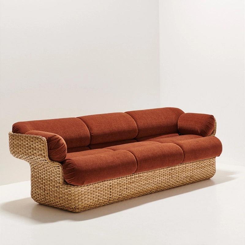 Le canapé Basket est équipé de coussins arrondis sur l'assise et le dossier, fabriqués à partir d'une mousse confortable avec des coussins cylindriques ajoutant une douceur supplémentaire et un effet enveloppant sur les côtés du siège.