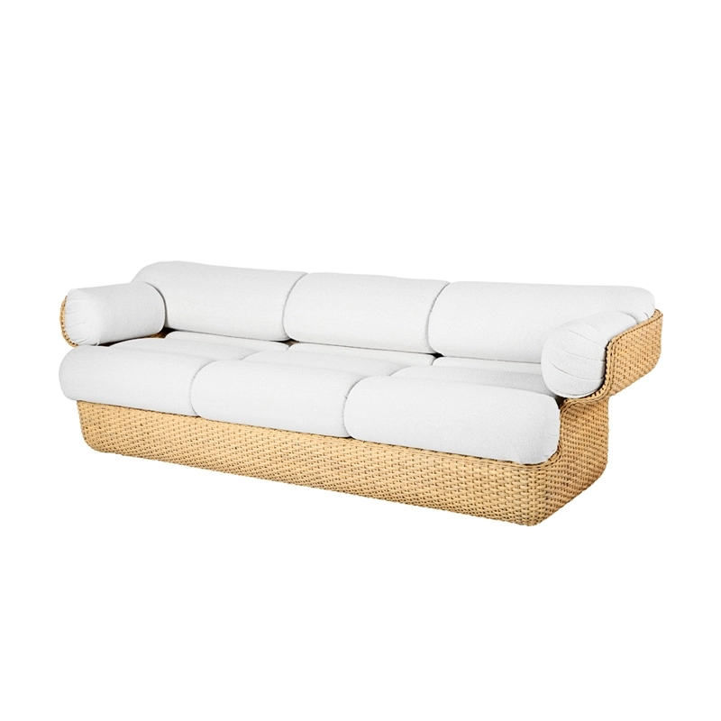 La collection Basket de chez Gubi rend hommage à la technique classique de la vannerie en rotin. La collection comprend un canapé trois places, un canapé deux places et un fauteuil, qui partagent tous la même construction et les mêmes caractéristiques.