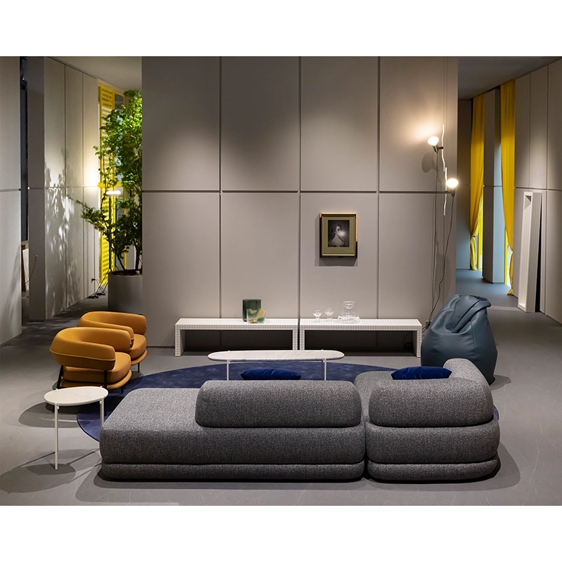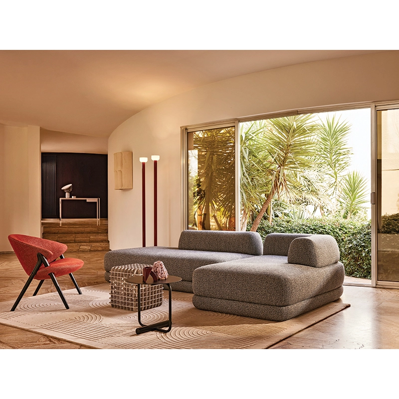 Ce canapé innovant Zanotta peut être placé au centre de la pièce, grâce à son design élégant même vu de dos. Sa silhouette en fait un canapé visuellement accueillant et très confortable. Le dossier de Bumper est amovible et fixé à l’assise avec des crochets empruntés à l'industrie automobile, inspirant également le nom du produit. Proposé ici dans une composition d’angle avec méridienne, le canapé Bumper Zanotta se décline aussi en version droite et dans différentes formes de modules à associer pour créer une composition unique.