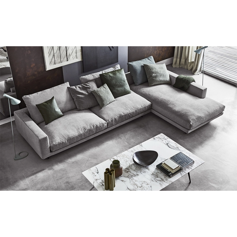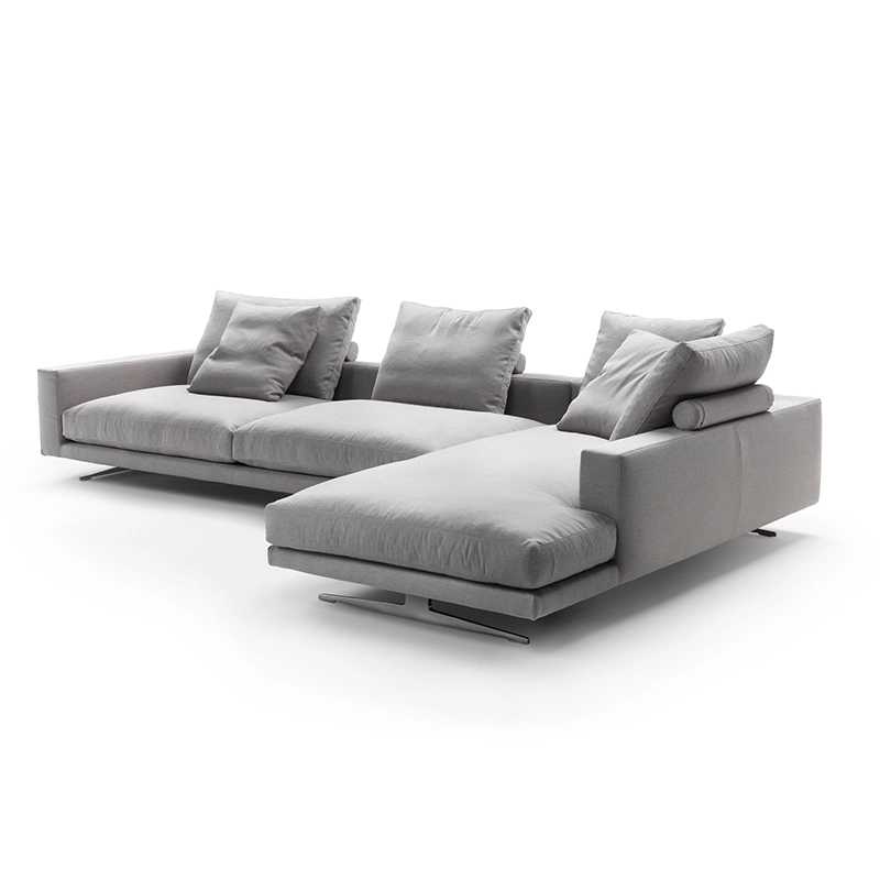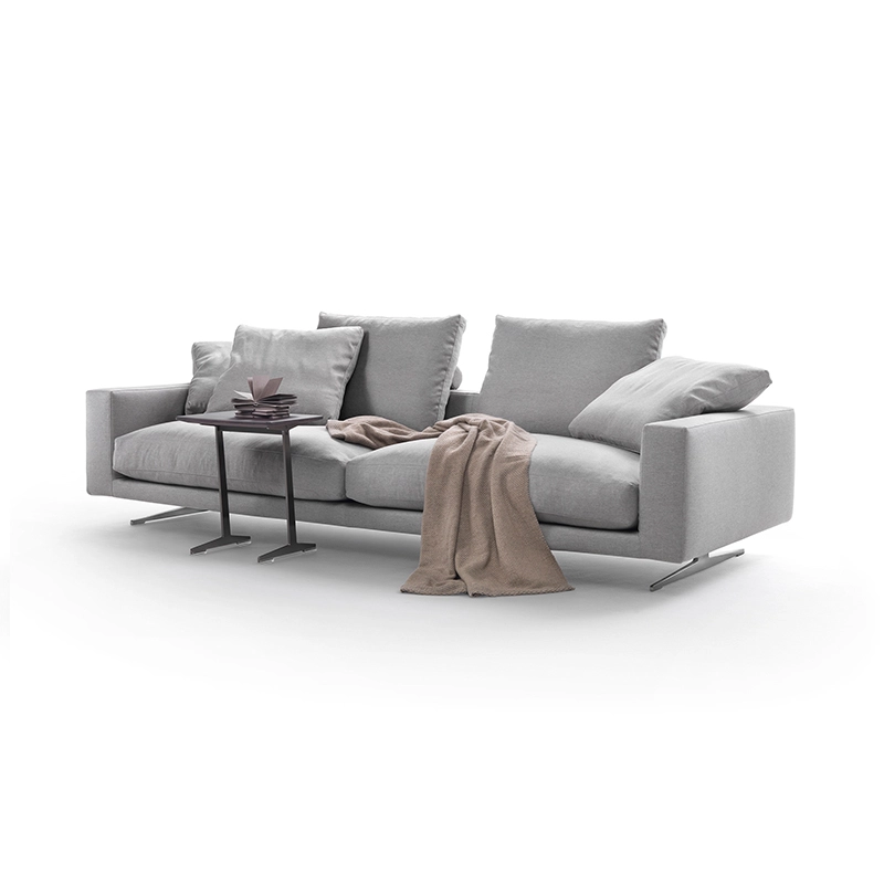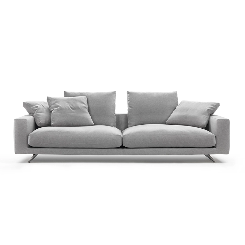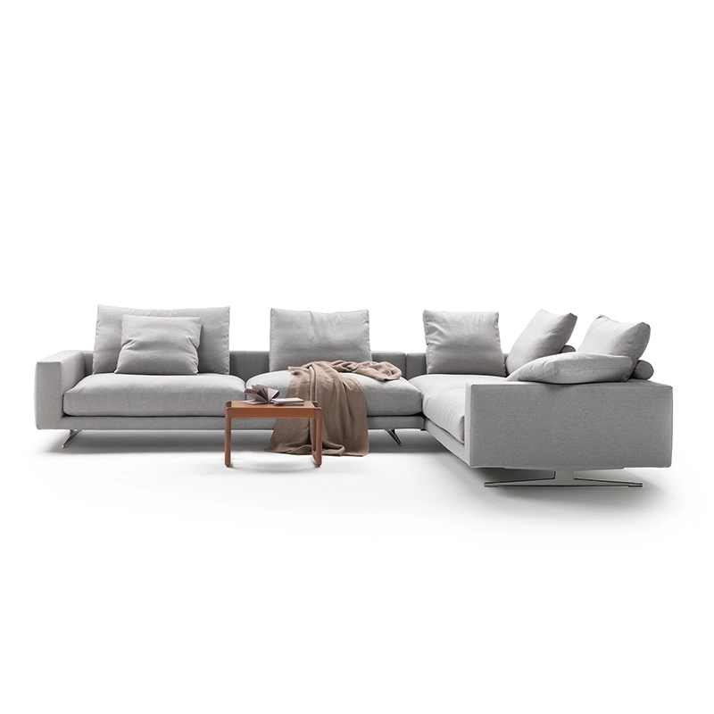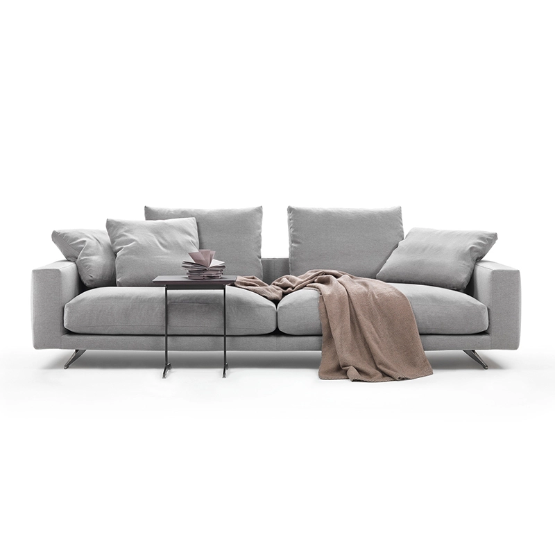 Dessiné par Antonio Citterio pour Flexform, le canapé Campielo allie des lignes épurées et minimalistes à une promesse d'accueil chaleureux et de grande souplesse. Les coussins d'assise possèdent un insert central réalisé dans un matériau indéformable enrobé d'une couche de plume d’oie, généreuse et moelleuse. Les coussins de dossier sont également en plume, dans le but d'amplifier la sensation de souplesse enveloppante, et sont disponibles dans les versions avec ou sans rouleau afin d'obtenir des résultats différents du point de vue esthétique et ergonomique. Le coussin avec rouleau procure un plus grand soutien au dos et au cou. Le canapé Campielo de Flexform repose sur un élégant piètement en fonte d'aluminium peint, disponible dans les couleurs gris et bronze, ou satiné, chromé, bruni, chrome noir et champagne. Campielo est un canapé à la personnalité transversale, en mesure de s'intégrer harmonieusement dans n’importe quel environnement, du classique au contemporain, et de revêtir avec une élégance décontractée tous les tissus et les cuirs de la collection Flexform. Contactez-nous pour plus d’informations.
