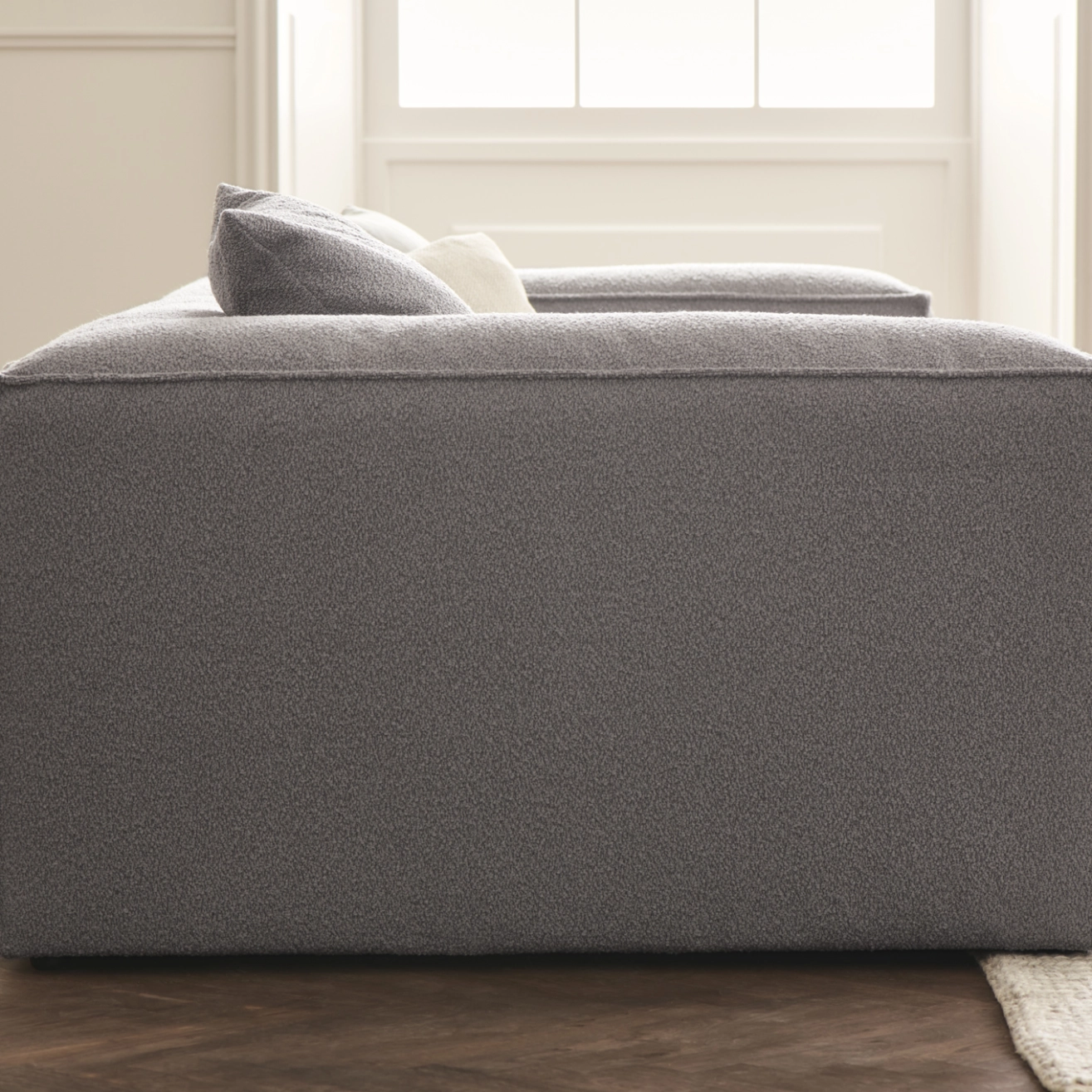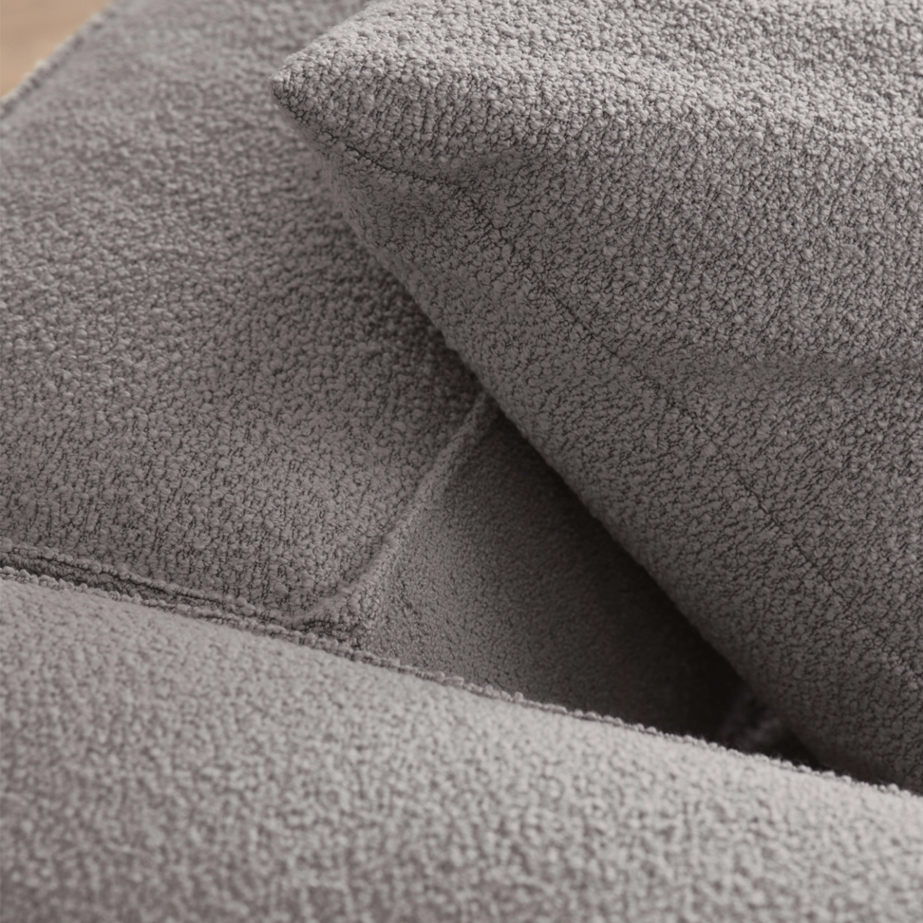 Tissu bouclé Paza, bois certifié FSC™, rembourrage plumes, de duvets et de fibres, mousse froide