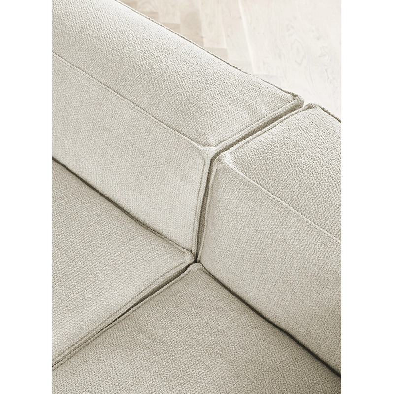 Pour l'entretien du canapé, il est important de battre les coussins pour redonner régulièrement du volume au canapé, mais il n'est cependant pas possible de conserver une forme fixe. Cosima prendra une forme plus arrondie avec le temps et l'aspect des coutures deviendra plus organique grâce au doux rembourrage confortable. Cela ne doit pas être considéré comme un défaut, mais comme une patine normale qui adoucit l'aspect du canapé.