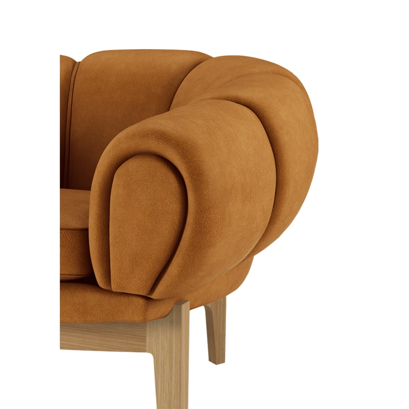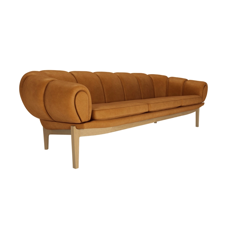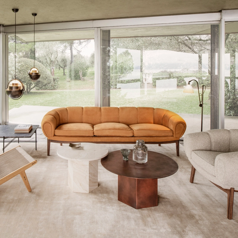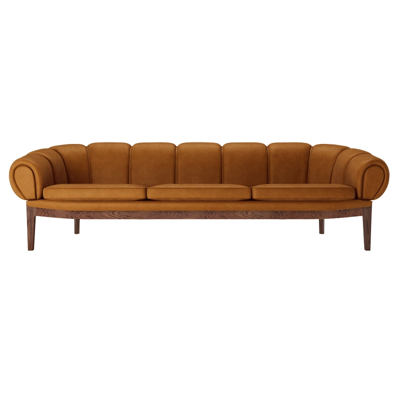 Dessinée par l’architecte et designer danois Illum Wikkelsø en 1962, la collection Croissant est une version élégante et ludique des traditionnels canapés et fauteuils Chesterfield. Pour Wikkelsø, un fauteuil ne doit pas uniquement servir à s’assoir droit, mais doit aussi être confortable quel que soit la position adoptée. Ainsi, il revisite ces pièces classiques pour un public plus détendu qui émerge dans l’optimisme des années 60. Avec sa forme caractéristique et gourmande de viennoiserie, le canapé Croissant se démarque avec un certain sens de l’humour dans tous les intérieurs. Il apporte sa personnalité à lui tout seul de votre salon, mais peut aussi très bien être associé à d’autres meubles au caractère fort. Gubi réédite cette magnifique pièce et rend hommage au design original, en respectant sa présence sculpturale et théâtrale, ses courbes organiques et une fabrication artisanale.