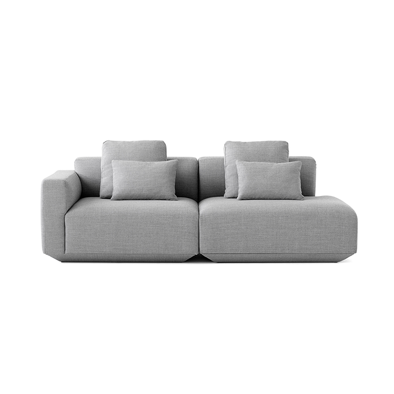 Develius est composé de 16 modules de canapés différents variant en profondeur, largeur et forme, du rectangulaire au carré, avec ou sans accoudoirs. La collection comprend également une grande variété de coussins amovibles et des poufs. Créez un coin confortable dans un espace privé, ou un salon somptueux dans un environnement collectif. Les lignes épurées de la collection