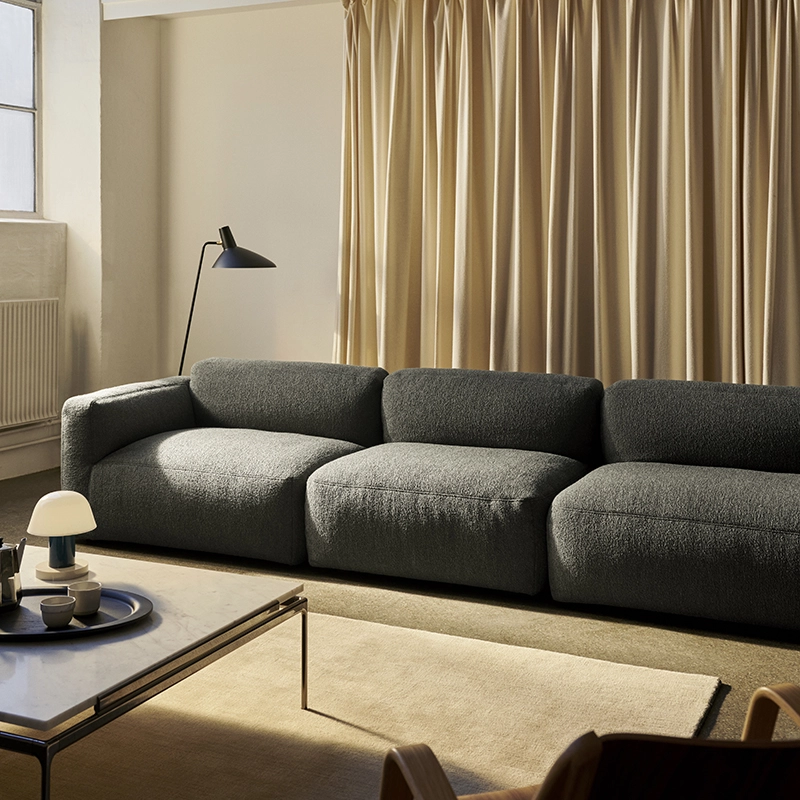 Edité par And Tradition, Develius Mellow est l'incarnation même du canapé de luxe. Conçu par le designer néerlandais Edward van Vliet, c’est un canapé modulaire à l’expression ultra moderne, permettant d'agencer les différents composants pour créer un canapé très personnel et votre propre coin de paradis. Develius Mellow est composé de 16 modules de canapés différents variant en profondeur, largeur et forme, du rectangulaire au carré, avec accoudoirs. Créez un coin confortable dans un espace privé, ou un salon somptueux dans un environnement collectif. Les lignes épurées de la collection Develius Mellow lui permettent de s’intégrer dans tous les styles d’espaces.