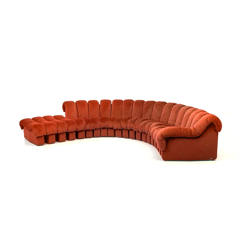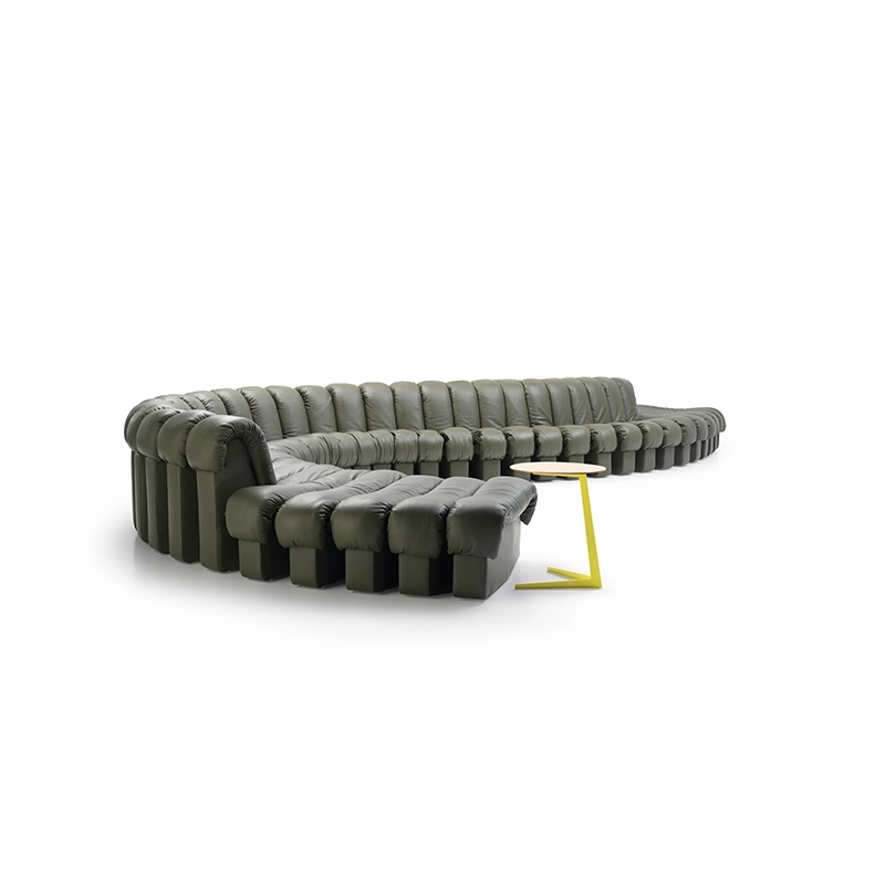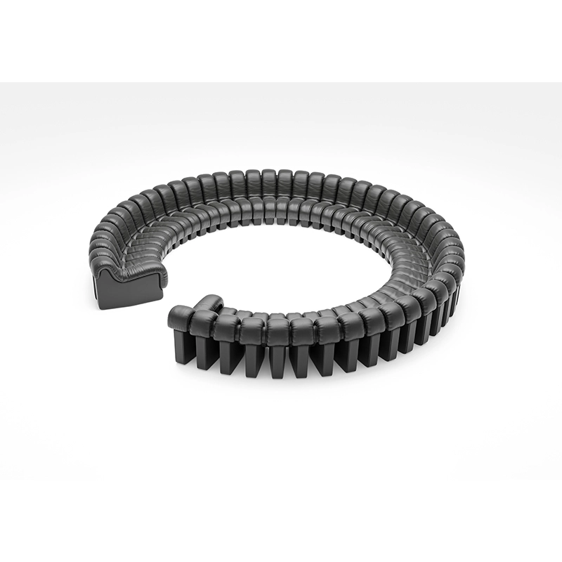 Lancé en 1972, le DS-600 est devenu une icône du design par sa conception révolutionnaire et son allure toujours saisissante aujourd’hui. Edité par De Sede, DS-600 est un système modulaire indestructible et évolutif, composé d’éléments d’assise qui permettent de créer une composition originale. Les modules d’assise se composent d'un noyau de mousse dure en forme de L, recouvert d'un coussin doublé de duvet et recouvert de cuir. Les éléments sont reliés par une charnière enfichable et une construction en cuir et fermeture éclair. L'élément tabouret complète le célèbre siège en forme de serpent avec un élément intermédiaire et un élément d'extrémité. Grâce à sa modularité, le canapé DS-600 Snake De Sede s’adapte à tous les espaces et crée une assise unique.