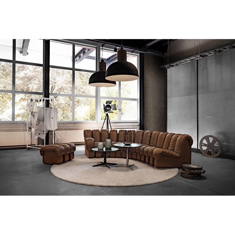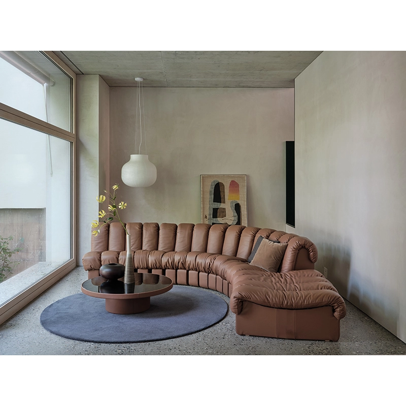 A l’instar de beaucoup d’autres marques de cuir de luxe, le fabricant de mobilier De Sede était au départ un atelier de maroquinerie. Située à Klingnau (dans le nord de la Suisse, près de la frontière allemande) l’activité de fabrication de mobilier haut de gamme de De Sede remonte à 1965. A cette époque, l’entreprise familiale vient d’être constituée, et commence peu à peu à travailler avec des designers du monde entier sur la création de chaises, fauteuils et canapés haut de gamme en cuir, et faits à la main. Au fil des années, la gamme de produits s’étend aux tables, aux lits, et bien d’autres.Des proportions généreuses contrebalancées par des silhouettes élégantes : voilà la marque de fabrique de De Sede.