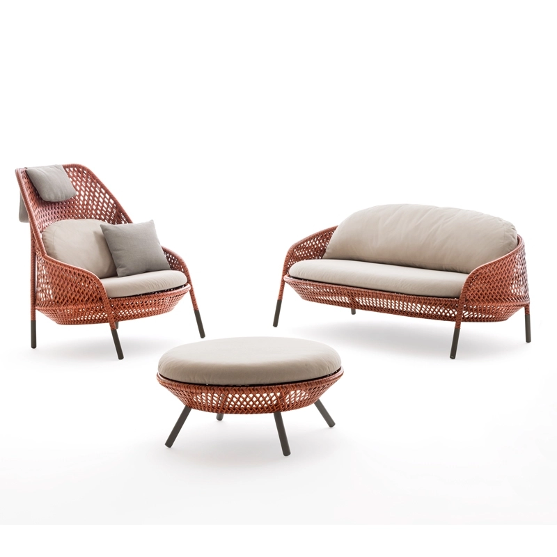 Ahnda est une collection originale de fauteuils d'extérieur, dont le design, l'ergonomie et le confort sont ceux d'un bel objet d'intérieur. Comprenant un canapé deux places, un fauteuil club, un fauteuil bergère et un repose-pied/table basse, Ahnda séduit par son beau tressage ajouré, inspiré par la culture métissée des Philippines. Véritable invitation à la détente, Ahnda possède une inclinaison parfaite qui permet aussi de se reposer que de discuter dans le jardin. Conçue pour résister aux intempéries les plus extrêmes, cette collection outdoor allie parfaitement le fonctionnel et l’esthétique.