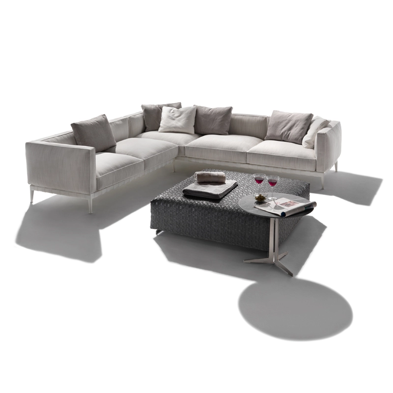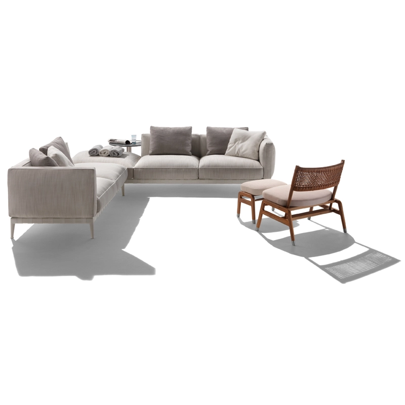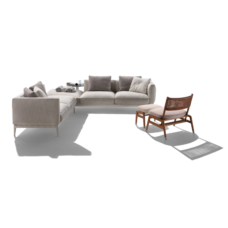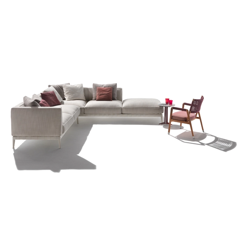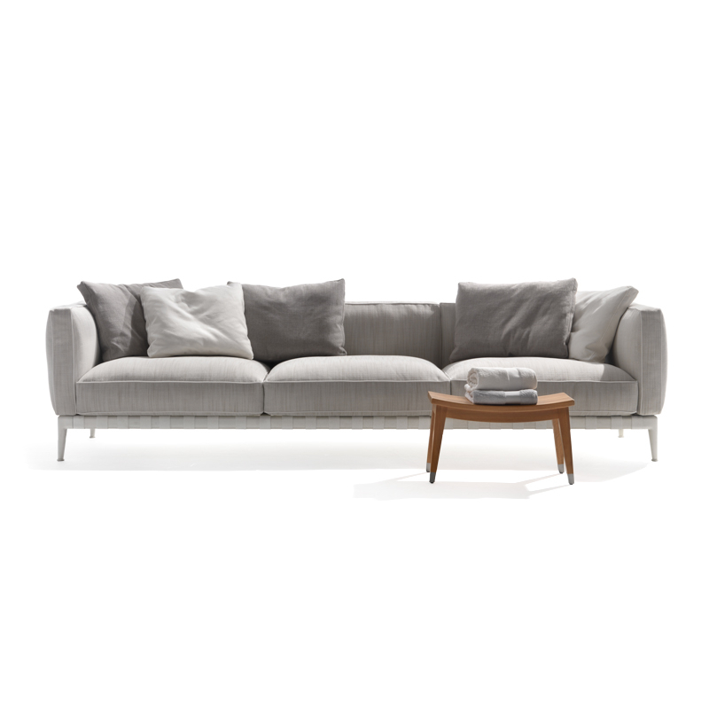 Atlante, un nom évocateur – celui du Titan qui portait l'univers sur ses épaules – pour identifier un système de mobilier d'extérieur qui allie une grande recherche esthétique et une remarquable polyvalence en termes de personnalisation. La famille Atlante de Flexform comprend des canapés droits et modulaires, des lits, disponibles en une profusion de types et de finitions qui offrent une grande liberté d'interprétation dans la conception d'espaces extérieurs. Le canapé outdoor Atlante se démarque par une esthétique contemporaine ; sa rigoureuse structure en métal contraste avec la générosité des coussins rembourrés, caractérisés par un élégant passepoil en gros-grain qui souligne leurs formes douces et accueillantes. Le piétement du canapé est en acier inox muni de sangles élastiques déperlantes et les pieds en fonte d'aluminium révèlent une forme gracieuse et harmonieuse. Le canapé Atlante regorge de détails de confection qui rehaussent son haut degré de personnalisation : le piétement en métal est peint à la poudre époxy en une série de couleurs raffinées, tandis que les sangles élastiques sont disponibles en blanc, sable, gris et anthracite afin de créer un contraste agréable ou un effet ton sur ton délicat. Le système de sièges Atlante laisse une grande liberté en termes de composition et permet de réaliser une variété de configurations qui répondent aux besoins les plus divers. Les compositions peuvent résulter particulièrement dynamiques et fonctionnelles en combinant les éléments d'assise avec des éléments pratiques tenant lieu de tablettes ou avec de petites tables bout de canapé avec plateau en bois d'iroko, en pierre naturelle disponible en une profusion de finitions. Il est vivement recommandé d'utiliser les housses imperméables appropriées pour garder les canapés Atlante en bonne condition et pour préserver au maximum leur état d'origine.