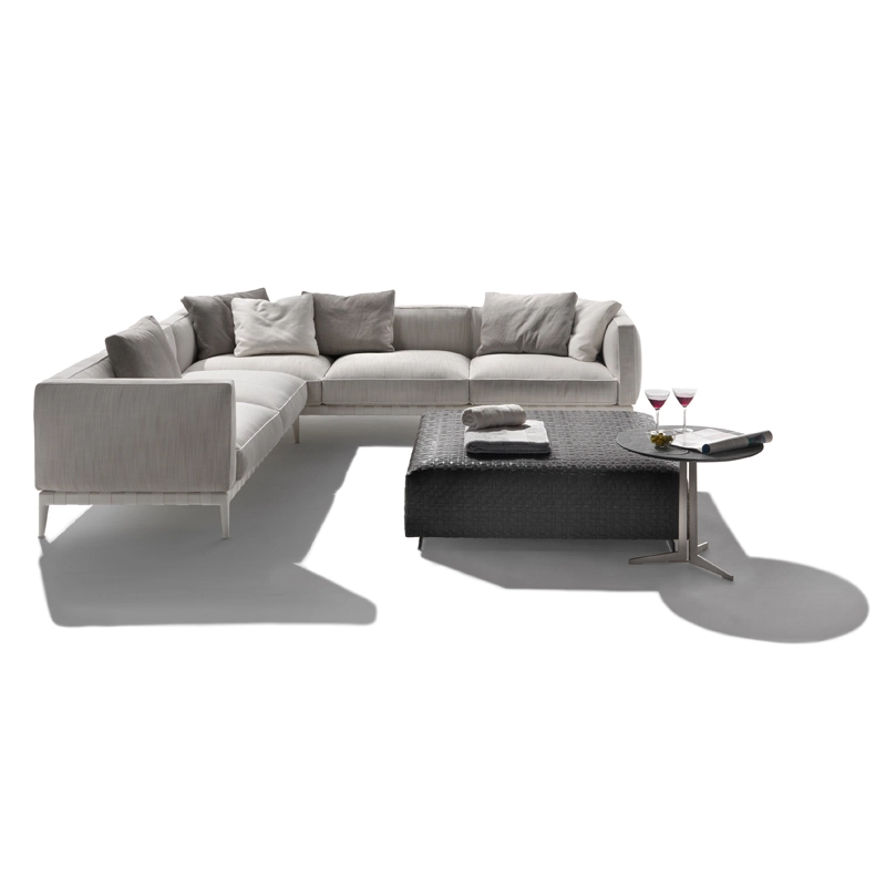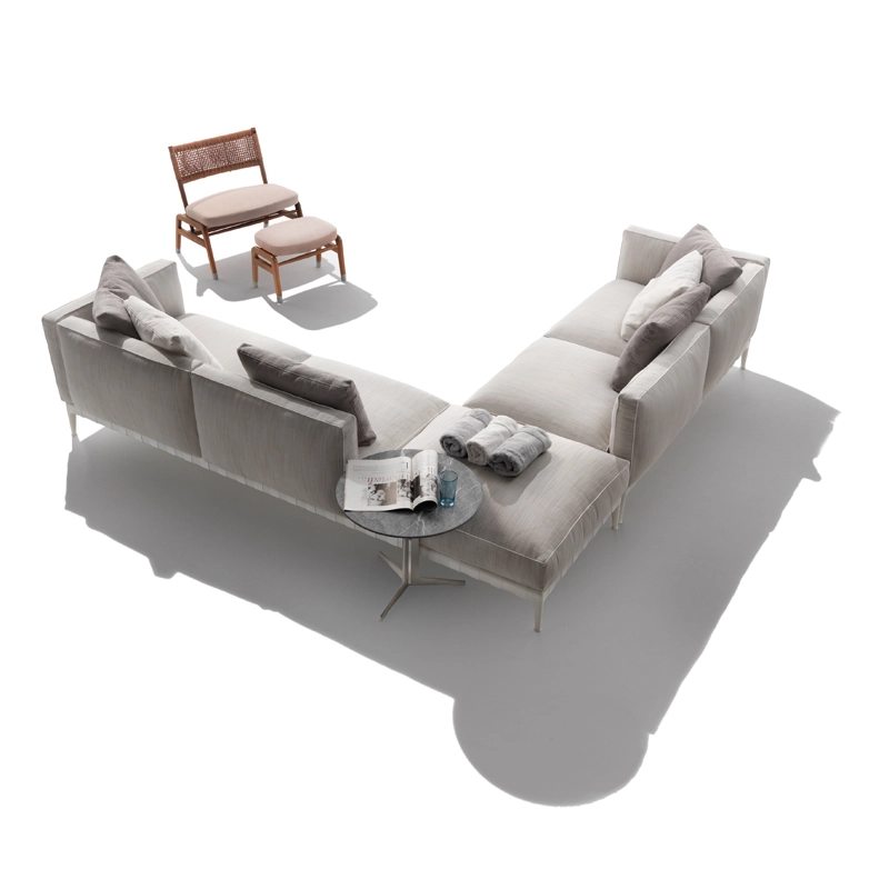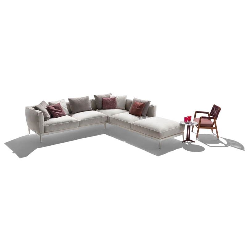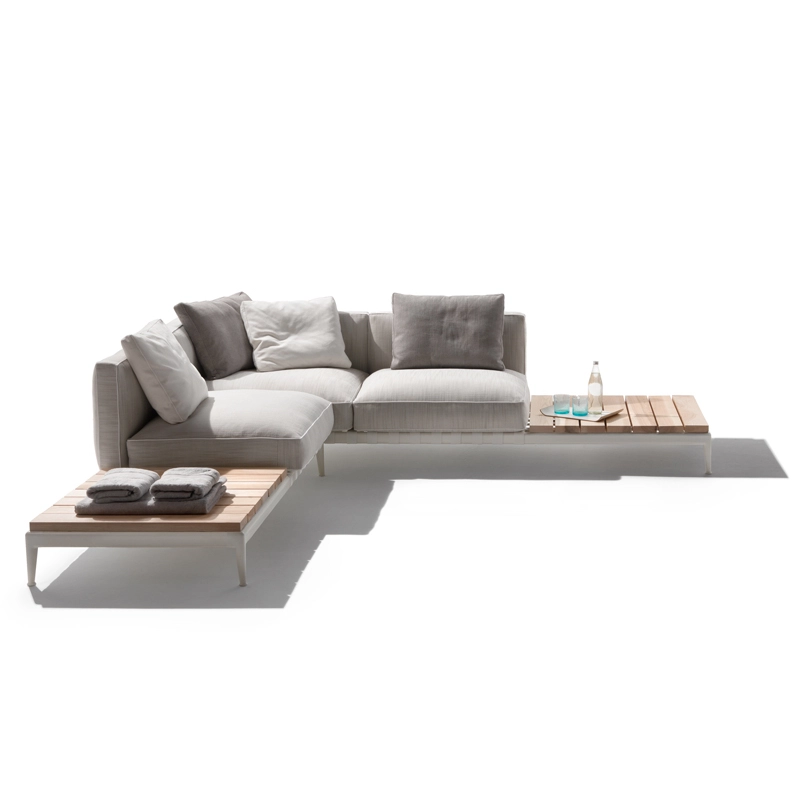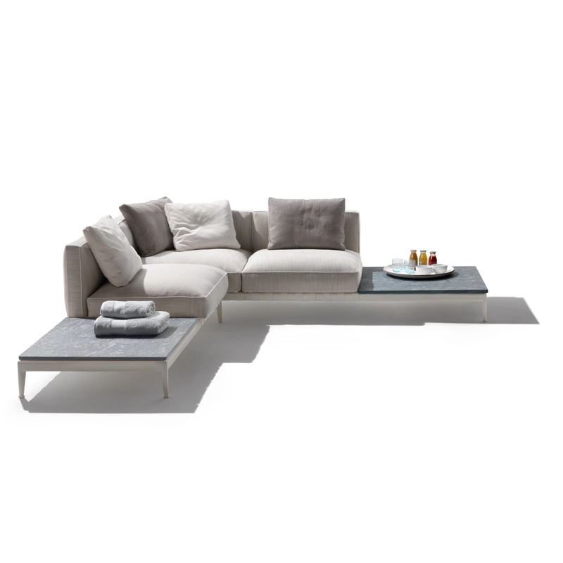 Atlante, un nom évocateur – celui du Titan qui portait l'univers sur ses épaules – pour identifier un système de mobilier d'extérieur qui allie une grande recherche esthétique et une remarquable polyvalence en termes de personnalisation. La famille Atlante de Flexform comprend des canapés droits et modulaires, des lits, disponibles en une profusion de types et de finitions qui offrent une grande liberté d'interprétation dans la conception d'espaces extérieurs. Le canapé outdoor Atlante se démarque par une esthétique contemporaine ; sa rigoureuse structure en métal contraste avec la générosité des coussins rembourrés, caractérisés par un élégant passepoil en gros-grain qui souligne leurs formes douces et accueillantes. Le piétement du canapé est en acier inox muni de sangles élastiques déperlantes et les pieds en fonte d'aluminium révèlent une forme gracieuse et harmonieuse. Le canapé Atlante regorge de détails de confection qui rehaussent son haut degré de personnalisation : le piétement en métal est peint à la poudre époxy en une série de couleurs raffinées, tandis que les sangles élastiques sont disponibles en blanc, sable, gris et anthracite afin de créer un contraste agréable ou un effet ton sur ton délicat. Le système de sièges Atlante laisse une grande liberté en termes de composition et permet de réaliser une variété de configurations qui répondent aux besoins les plus divers. Les compositions peuvent résulter particulièrement dynamiques et fonctionnelles en combinant les éléments d'assise avec des éléments pratiques tenant lieu de tablettes ou avec de petites tables bout de canapé avec plateau en bois d'iroko, en pierre naturelle disponible en une profusion de finitions. Il est vivement recommandé d'utiliser les housses imperméables appropriées pour garder les canapés Atlante en bonne condition et pour préserver au maximum leur état d'origine.