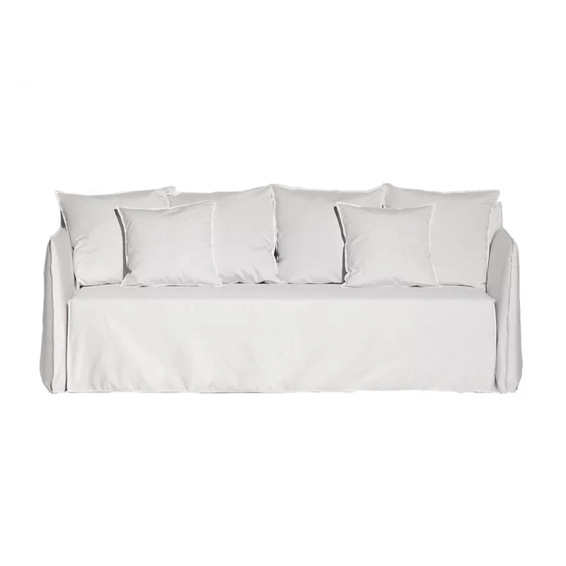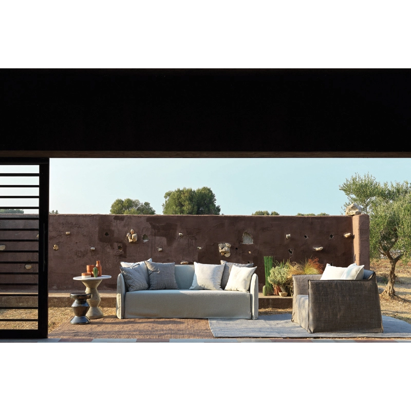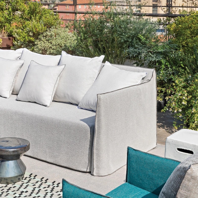 Le canapé rembourré Ghost Out 12 est créé par Paola Navone pour la marque Gervasoni. Le canapé est basé sur une coque légère aux volumes essentiels. Conçu pour résister à l’eau et au soleil et pour conserver sa forme et son esthétique dans le temps, il présente une structure géométrique où des coussins libres ajoutent un degré de confort supplémentaire. Confortable et enveloppant, le canapé Ghost Out 12 est déhoussable. La caractéristique principale du canapé Ghost Out 12 est son revêtement: une housse surdimensionnée soulignée par des coutures apparentes. La housse du canapé Ghost Out 12 se retire facilement et permet ainsi de donner un aspect chaque fois différent.