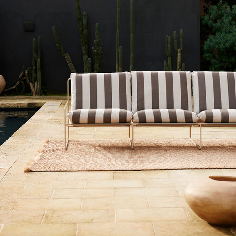 Avec Desert Stripe, Ferm Living propose une collection de sièges rembourrés, parfaits pour créer un espace de convivialité et de détente dans le jardin. Les canapés et fauteuils Desert Stripe ont été conçus pour l’extérieur avec des matériaux et des tissus qui résistent aux intempéries et au soleil. Confortable, fonctionnelle et esthétique, la collection Desert Stripe s’adapte à tous les espaces extérieurs pour profiter pleinement des beaux jours. Elle convient également très bien à une utilisation intérieure.