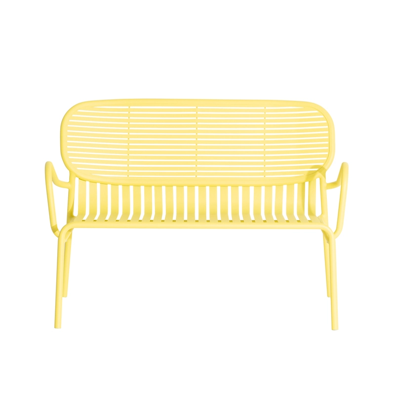 Avec Week-End, la marque française Petite Friture, pose son regard singulier sur l’été et propose avec le studio Brichet-Ziegler une approche graphique et contemporaine du mobilier de jardin. Celle-ci se joue d’un rythme de bandes horizontales et verticales posées avec habileté sur une structure aux lignes fortes. Les bandes de ce canapé d'extérieur qui caractérisent la collection Week-End éditée par Petite Friture, sont réalisées dans des feuilles d’aluminium découpées au laser en une seule pièce et non en lattes assemblées, permettent la suppression de vis ou de soudures inconfortables. Le travail des lattes horizontales et verticales comme des rayures, souligne les pleins et les vides, affirmant l’identité de la collection. La collection Week-End est une gamme de mobilier outdoor complète. Les couleurs précises sélectionnées pour cette collection marquent seules ou en combinaison les lignes d’horizon d’un balcon, d’une terrasse ou d’un jardin. Cette banquette est disponible en plusieurs couleurs comme le noir, jaune, vert jade … La mise en couleurs de la collection Week-end, de Petite Friture, en peinture poudre époxy anti-UV grainée garantit un maintien impeccable des teintes au cours du temps. La banquette design proposée par Petite Friture, a été conçue avec l’obsession de tirer le meilleur parti des matériaux et des techniques de réalisation à la disposition des designers. Réalisée en aluminium, matériau sélectionné pour sa légèreté et sa résistance aux intempéries, la collection Week-End allie confort esthétique et sens pratique. En effet, cette collection est résolument pensée autour d’une utilisation pratique car toutes les assises sont empilables.