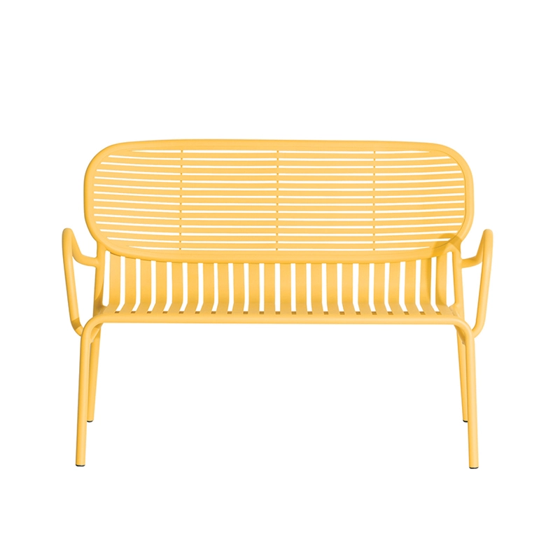 Avec Week-End, la marque française Petite Friture, pose son regard singulier sur l’été et propose avec le studio Brichet-Ziegler une approche graphique et contemporaine du mobilier de jardin. Celle-ci se joue d’un rythme de bandes horizontales et verticales posées avec habileté sur une structure aux lignes fortes. Les bandes de ce canapé d'extérieur qui caractérisent la collection Week-End éditée par Petite Friture, sont réalisées dans des feuilles d’aluminium découpées au laser en une seule pièce et non en lattes assemblées, permettent la suppression de vis ou de soudures inconfortables. Le travail des lattes horizontales et verticales comme des rayures, souligne les pleins et les vides, affirmant l’identité de la collection. La collection Week-End est une gamme de mobilier outdoor complète. Les couleurs précises sélectionnées pour cette collection marquent seules ou en combinaison les lignes d’horizon d’un balcon, d’une terrasse ou d’un jardin. Cette banquette est disponible en plusieurs couleurs comme le noir, jaune, vert jade … La mise en couleurs de la collection Week-end, de Petite Friture, en peinture poudre époxy anti-UV grainée garantit un maintien impeccable des teintes au cours du temps. La banquette design proposée par Petite Friture, a été conçue avec l’obsession de tirer le meilleur parti des matériaux et des techniques de réalisation à la disposition des designers. Réalisée en aluminium, matériau sélectionné pour sa légèreté et sa résistance aux intempéries, la collection Week-End allie confort esthétique et sens pratique. En effet, cette collection est résolument pensée autour d’une utilisation pratique car toutes les assises sont empilables.