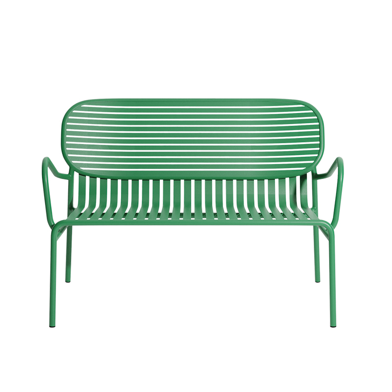 Avec Week-End, la marque française Petite Friture, pose son regard singulier sur l’été et propose avec le studio Brichet-Ziegler une approche graphique et contemporaine du mobilier de jardin. Celle-ci se joue d’un rythme de bandes horizontales et verticales posées avec habileté sur une structure aux lignes fortes. Les bandes de ce canapé d'extérieur qui caractérisent la collection Week-End éditée par Petite Friture, sont réalisées dans des feuilles d’aluminium découpées au laser en une seule pièce et non en lattes assemblées, permettent la suppression de vis ou de soudures inconfortables. Le travail des lattes horizontales et verticales comme des rayures, souligne les pleins et les vides, affirmant l’identité de la collection. La collection Week-End est une gamme de mobilier outdoor complète. Les couleurs précises sélectionnées pour cette collection marquent seules ou en combinaison les lignes d’horizon d’un balcon, d’une terrasse ou d’un jardin. Cette banquette est disponible en plusieurs couleurs comme le noir, jaune, vert jade … La mise en couleurs de la collection Week-end, de Petite Friture, en peinture poudre époxy anti-UV grainée garantit un maintien impeccable des teintes au cours du temps. La banquette design proposée par Petite Friture, a été conçue avec l’obsession de tirer le meilleur parti des matériaux et des techniques de réalisation à la disposition des designers. Réalisée en aluminium, matériau sélectionné pour sa légèreté et sa résistance aux intempéries, la collection Week-End allie confort esthétique et sens pratique. En effet, cette collection est résolument pensée autour d’une utilisation pratique car toutes les assises sont empilables.