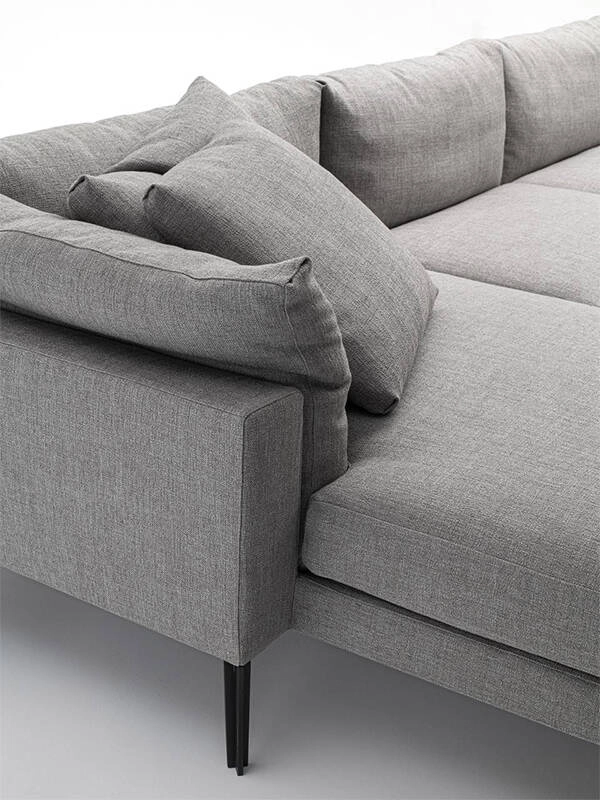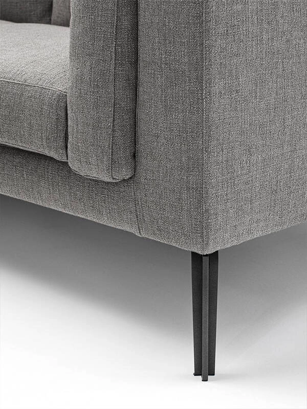 La famille Floyd-Hi 2 devient modulaire : des formes fluides et rassurantes qui se développent dans l'espace pour créer la composition souhaitée. Cette collection permet de créer des compositions d'une grande sobriété associée à une assise accueillante et confortable. La structure du dossier du canapé Floyd Hi 2 System est en bois de peuplier multicouche et en bois de sapin à double paroi, rembourré en mousse de polyuréthane à densité différenciée, et recouvert de fibre de polyester non tissée, résinée et aiguilletée, collée sur un support en velours polyamide. Le châssis du siège est en acier, avec revêtement en poudre époxy, suspendu par des sangles élastiques en caoutchouc revêtues, rembourré de mousse de polyuréthane. Les coussins de dossier et d'accoudoir sont en duvet d'oie prélavé et stérilisé, cousu dans des compartiments séparés, avec insert en mousse de polyuréthane. Les coussins d'assise moelleux sont réalisés en mousse de polyuréthane à densité différenciée et insert Visco-soft, recouvert de couches de fibres acryliques. Les pied sont en tôle d'acier découpée au laser avec revêtement en poudre époxy de couleur gris métal. Support de sol fixé par des pieds en PVC noir. Le revêtement est disponible en tissu ou en cuir, tous deux entièrement amovibles par des fermetures à glissière et des velcros.