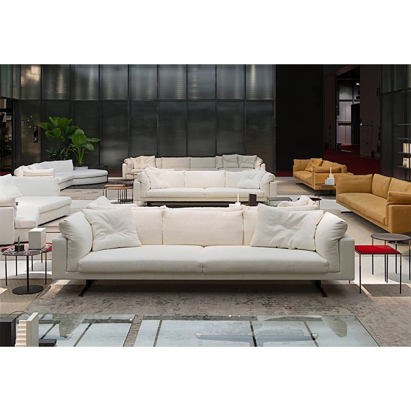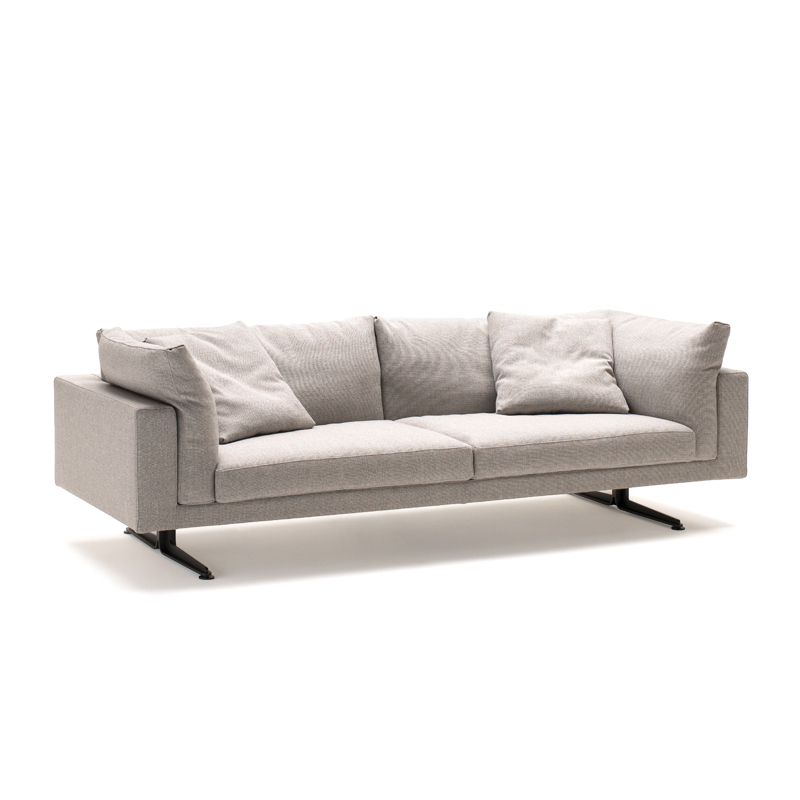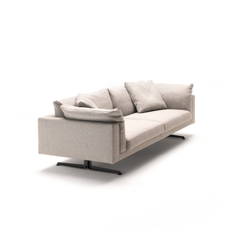 Dessiné par Piero Lissoni pour Living Divani, Floyd-Hi est un canapé qui se distingue par ses coussins d'accoudoir et de dossier qui s'insèrent entre la structure et l'assise, ainsi que par son piétement sculptural, classique et hi-tech à la fois. Ce canapé se décline en version linéaire ou elliptique et s'intègre aussi bien dans les espaces domestiques que les environnements publics. Le revêtement du canapé Floyd-Hi de Living Divani, amovible avec des fermetures éclairs et des attaches Velcro, est en tissu ou en cuir, ce qui lui permet de s’adapter à des ambiances aussi bien classiques que contemporaines. Contactez-nous pour plus d’informations.