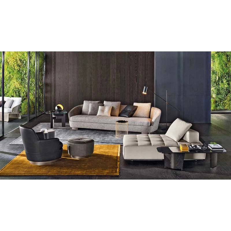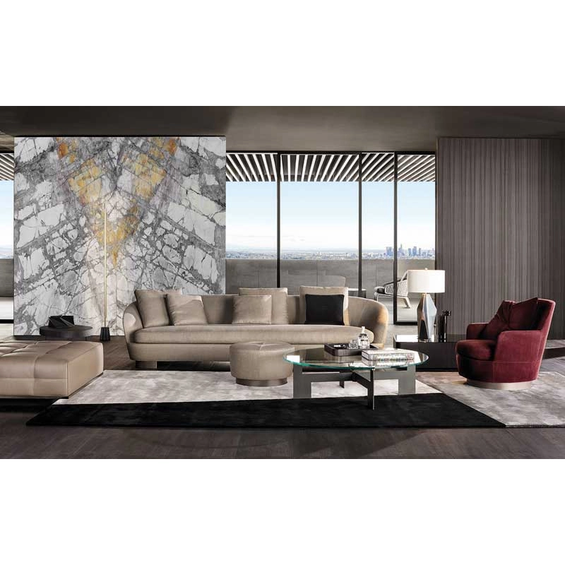 Jacques dont les formes arrondies créent un contraste frappant avec les volumes géométriques et rigoureux qui caractérisent le canapé Lawrence. L'élégance recherchée et les proportions compactes qui caractérisent tous les sièges de la collection