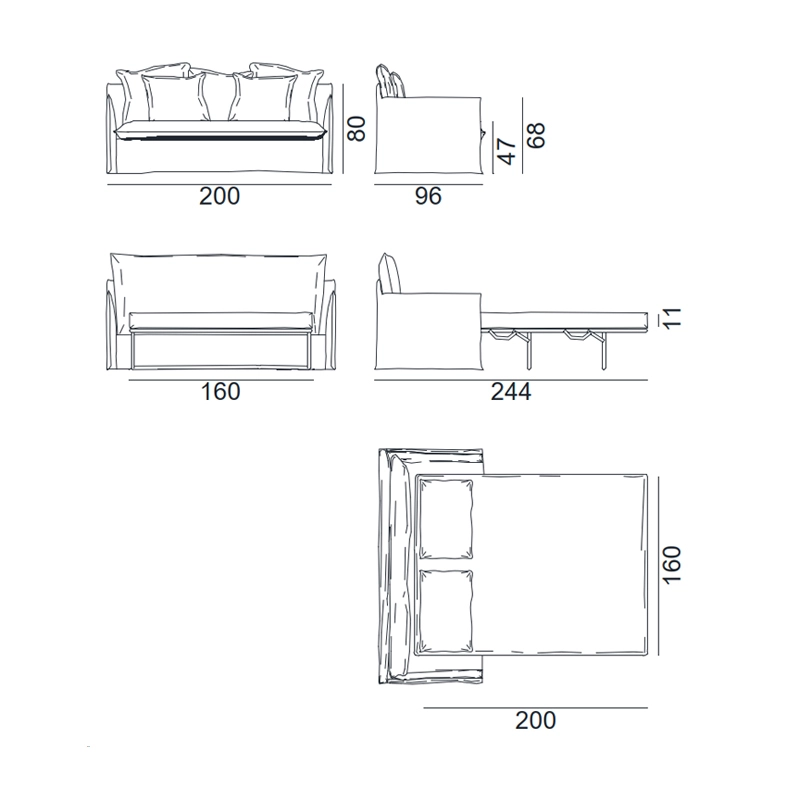 canapé lit Ghost 15, créé par Paola Navone pour la marque
