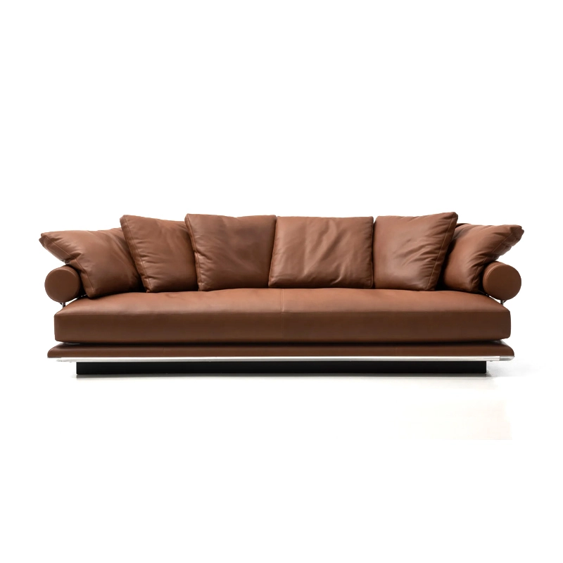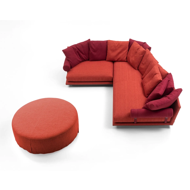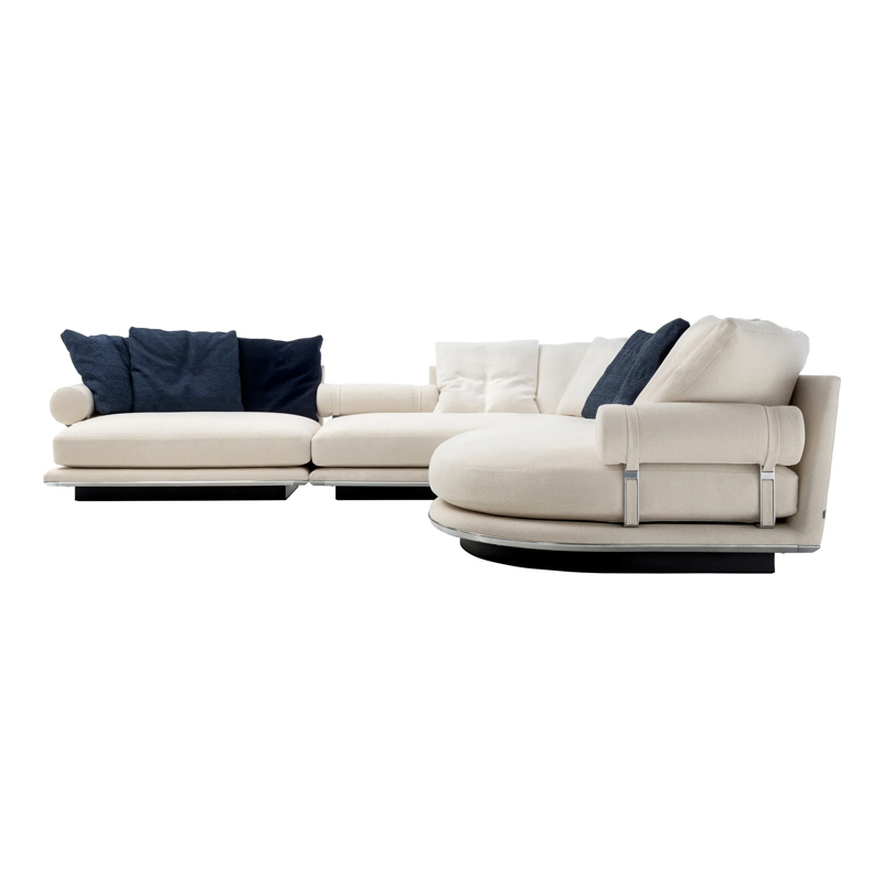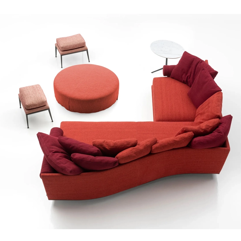 conçue par Antonio Citterio pour la marque B&B Italia, Noonu est un système de canapés qui permet de multiples compositions. Reprenant le nom d'un atoll des Maldives, Noonu est conçu comme un espace de pure relaxation. La collection Noonu associe des proportions généreuses à une grande flexibilité. La structure porteuse en retrait de l’assise est peu visible, ce qui donne l’impression que le canapé flotte au-dessus du sol. Les sièges sont profonds, dotés d’un grand coussin d’assise en une pièce, garantissant un confort extrême. Le dossier incliné a été conçu pour accueillir les coussins, qui peuvent être arrangés de différentes manières. Un accoudoir cylindrique, lié à la structure en aluminium par une sangle sophistiquée, peut être utilisé comme accoudoir ou repose-tête. Il peut être placé entre les sièges ou retiré complètement selon l’utilisation du canapé. La canapé Noonu comprend quatre éléments de base : en plus des éléments carrés et rectangulaire, B&B Italia propose un module « piano » qui crée une courbe accueillante au niveau du dossier, et un module « voile », qui fournit un volume arrondi généreux sur le devant. Disponible dans une grande variété de tissus ou cuir, le canapé Noonu se plaira parfaitement dans vos salons.